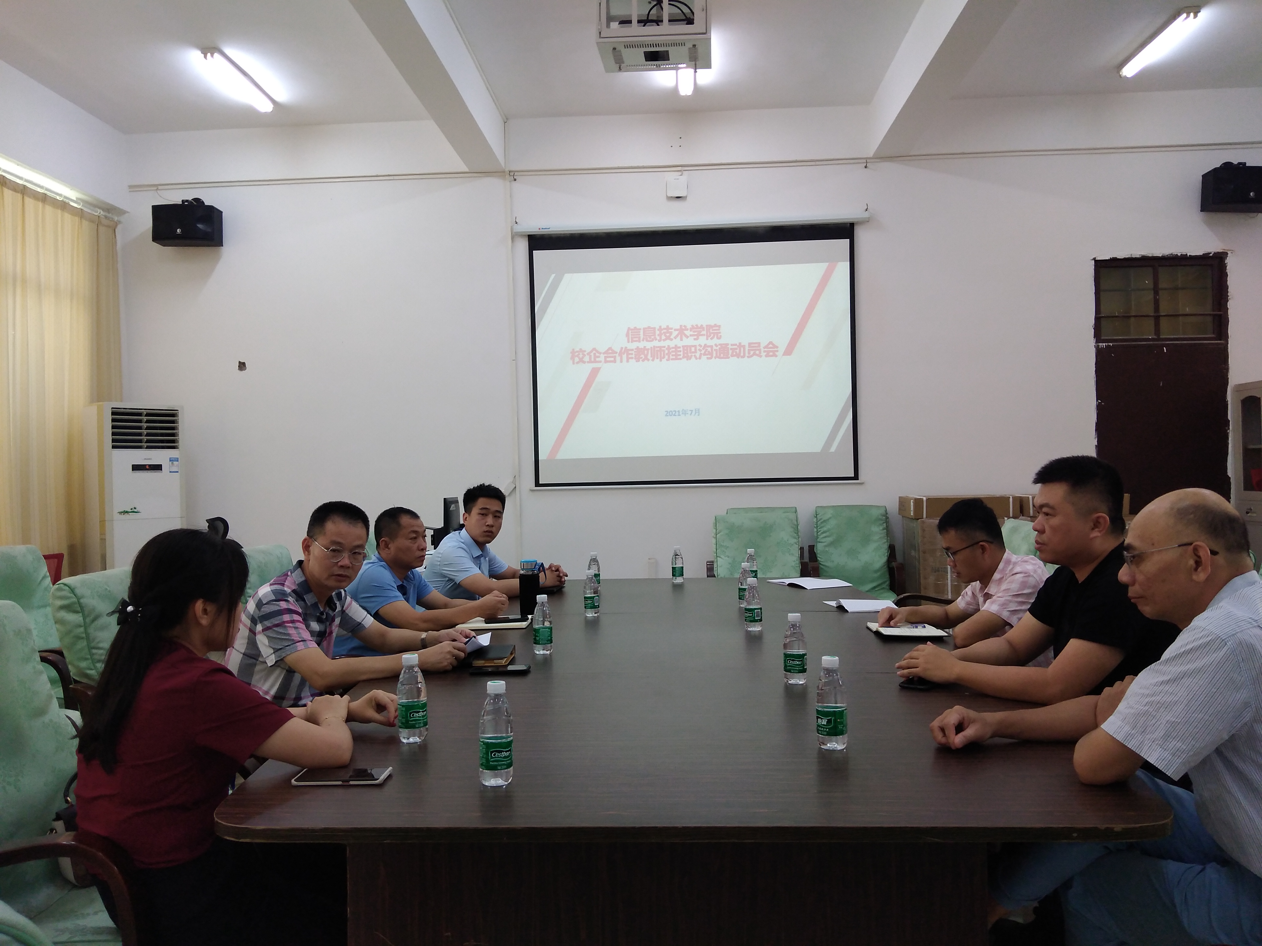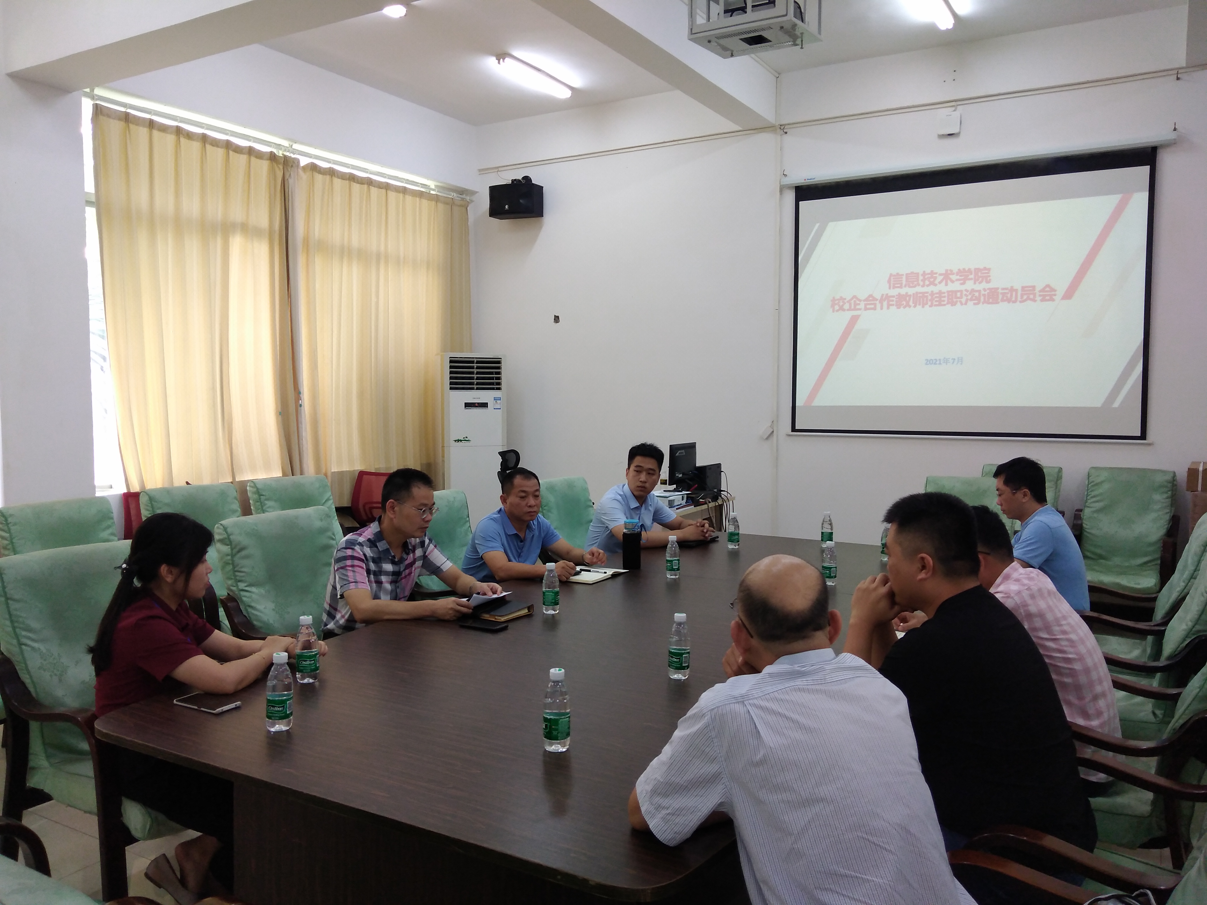 为了落实公司关于教师赴企业挂职锻炼的相关文件精神,加强双师队伍建设, 7月9日上午,公司在4-213会议室召开教师赴企业挂职锻炼部署动员会,会议由王忠经理主持。海南好思达网络科技有限公司人力资源部王晨曦经理、董长春高级工程师、信息技术公司党总支书记孙金以及准备到企业挂职锻炼的庞演、陈彬等6名教师参加了会议。