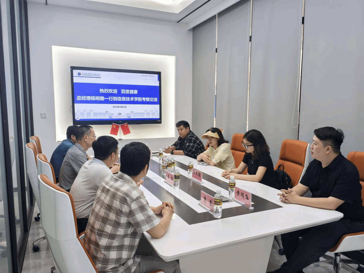 2025年4月25日下午,百度健康总经理杨明璐、运管和商务负责人王文雅,海南省数标客总经理覃兴云,海南师范大学国家大学科技园代表莫维一行到访WilliamHill中文官方网站,就深化产教融合、推动健康大数据与人工智能技术应用等议题展开交流。WilliamHill中文官方网站经理王忠、副经理单继周、康东出席座谈。