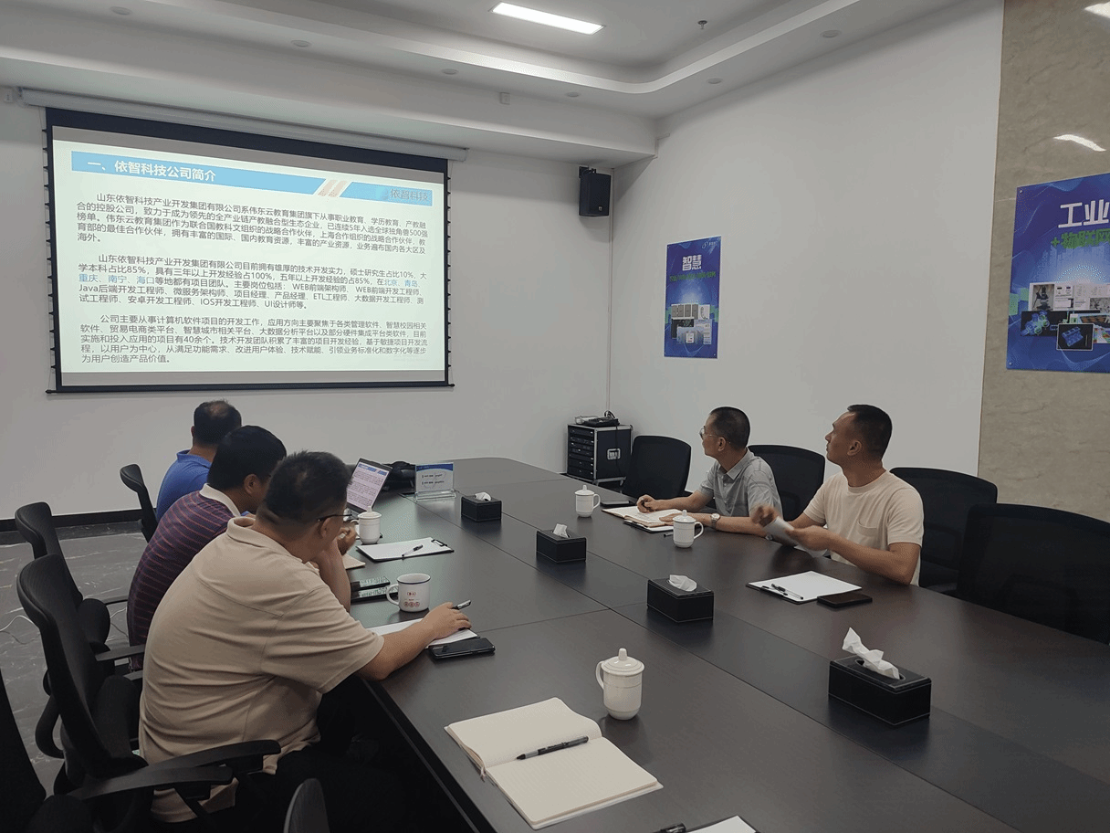 海南依智教育科技有限公司总经理张宗源和勤智创工科技有限公司总经理吴亚东对王忠经理一行的到来表示热烈欢迎,同时介绍了公司的运营情况、业务发展方向以及未来规划等。依智教育孵化创新中心主任蔡志中对公司的技术优势、产品特点以及市场应用情况进行了详细介绍,分享了公司在项目孵化以及资源整合等方面的经验和做法。双方就校企合作内容、合作模式等进行了交流,依智教育综合部负责人童娟、信息技术公司党政办负责人韩昌豪交流时在座。