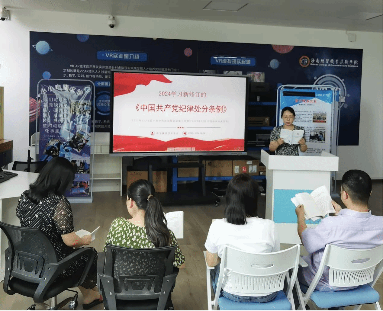 6月4日下午,WilliamHill中文官方网站教工党支部开展《中国共产党纪律处分条例》专题学习会,会议由教工党支部书记康东主持,数字媒体技术专业教师党员们参加。