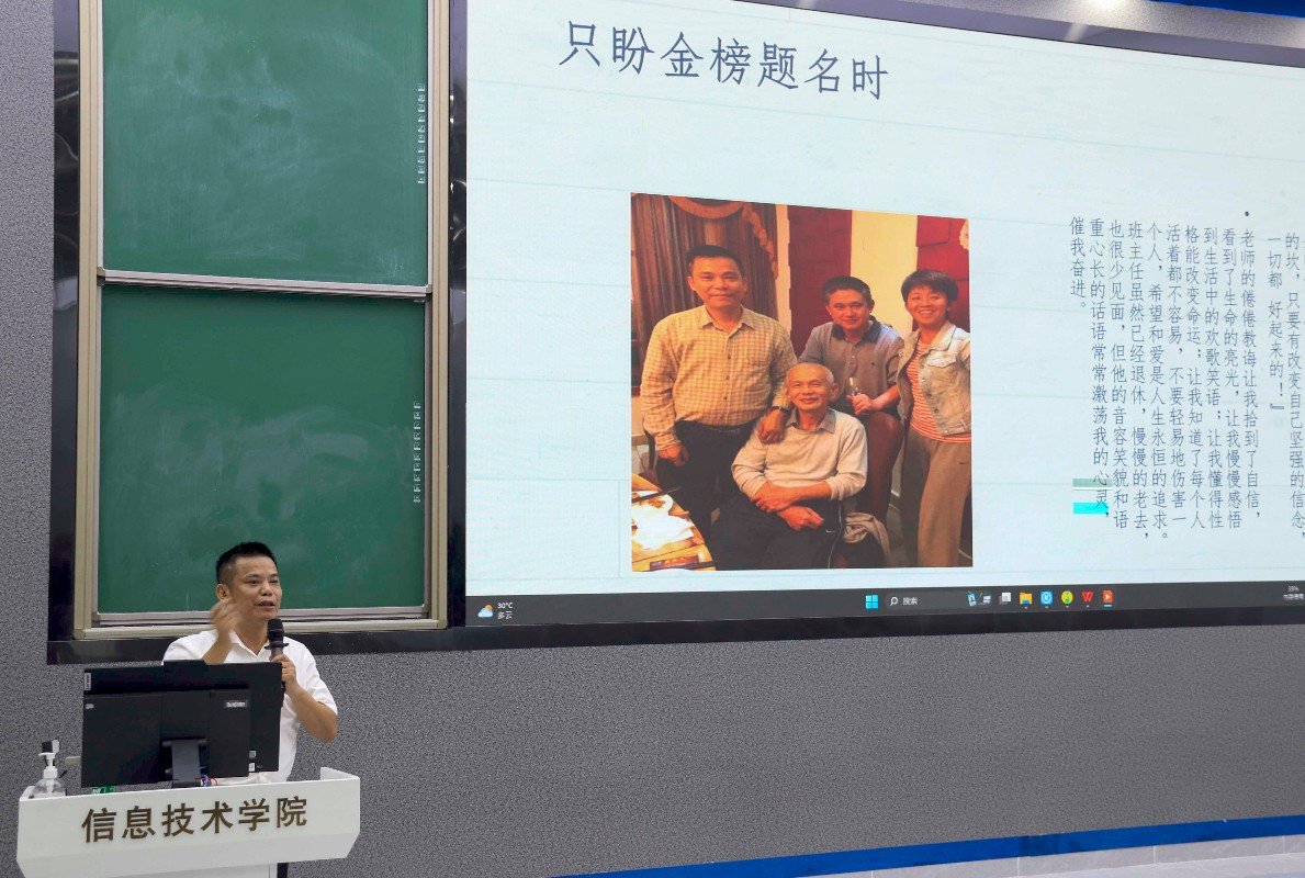 会议伊始,全体师生奏唱国歌,随后,由黄守官副书记进行发言。黄守官副书记首先向所有新生的到来表示热烈欢迎,同时希望同学们铭记“笃学砺能,知行合一”的校训,勇担时代使命,不负青春年华,努力成为海南自贸港建设的“脊梁”。