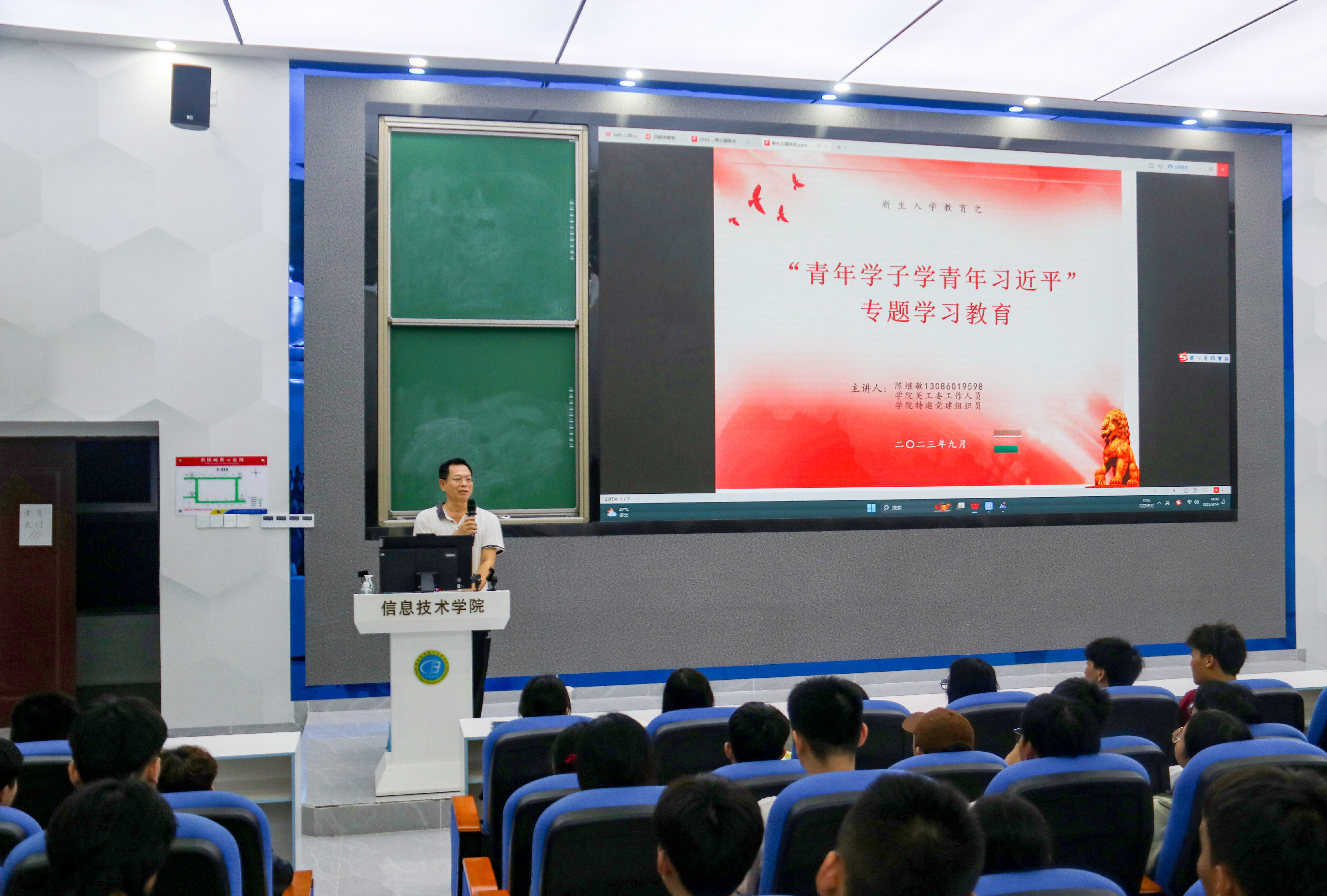为提高员工思想政治觉悟,培养员工艰苦奋斗作风,激发员工爱国热情,9月14日晚,WilliamHill中文官方网站于4-215召开“青年学子学习青年习近平”专题学习教育会议。会议由WilliamHill中文官方网站学工办负责人唐图主持,公司关工委委员、公司特邀党建组织员陈继敏同志进行主讲,公司200多名新生参加。