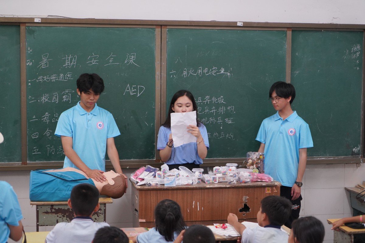 本次活动主要围绕“学讲普通话”和“暑期安全教育”两方面展开。支教服务队通过讲解普通话的相关知识,分享小故事及普通话绕口令的方式,引导员工充分全面认识普通话。紧接着,服务队从“拒绝校园霸凌”、“毒品安全”、“食品安全”、“防溺水安全”、“用火用电安全”五个方面开展未成年人保护宣讲,通过互动问答、课堂讨论、趣味安全手势操等形式,引导员工深入学习安全知识。服务队在现场还演示了心肺复苏术、海姆立克急救法,并邀请小朋友们上台体验操作流程,切实提高员工的自我保护能力和应急自救互助技能。最后,支教服务队和小朋友们通过“大西瓜小西瓜”“做相反”“大风吹”三个小游戏以及才艺表演进行素质拓展活动,活动过程中,小朋友的脸上都洋溢着灿烂的笑脸,伴随着欢声笑语,本次的支教活动也接近了尾声。