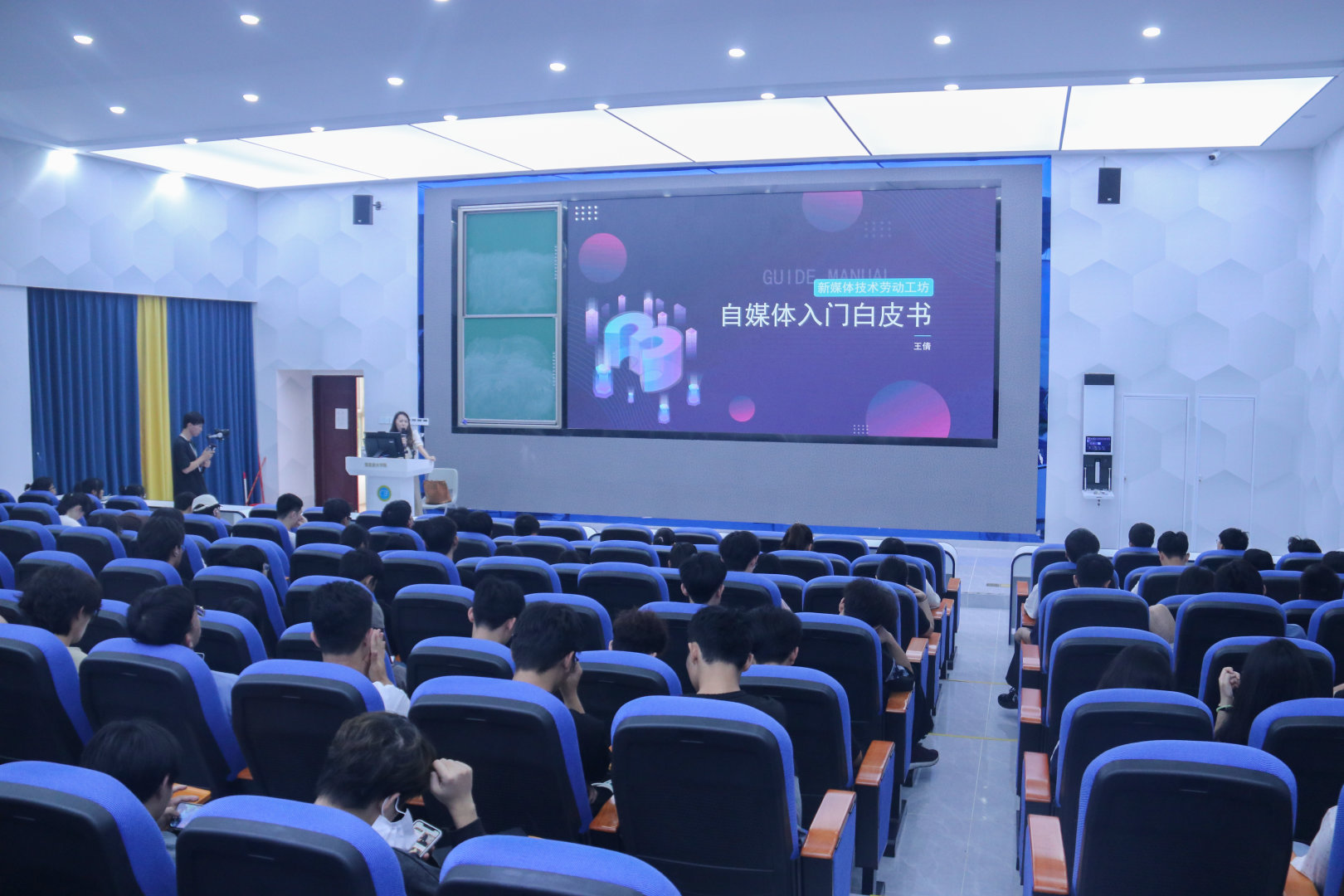 4月11日下午,“新媒体技术劳动工坊第四期公益讲座”在4-215成功举办。本次讲座以“自媒体入门白皮书”为主题展开,由海南英立大数据服务有限公司项目经理王倩老师担任主讲人,来自全校各个专业共计220余名同学共同聆听了此次讲座。