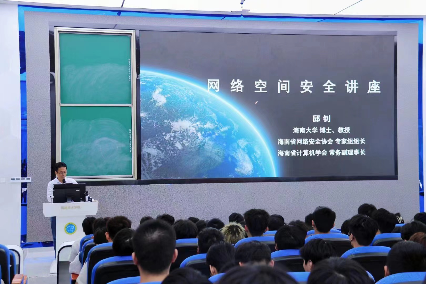 为了普及网络安全知识,切实提高公司学子的网络安全意识和防护技能,营造健康文明的网络环境。3月7日,WilliamHill中文官方网站邀请了海南大学邱钊博士在4-215开展了《网络空间安全》主题讲座,WilliamHill中文官方网站学子到场聆听。