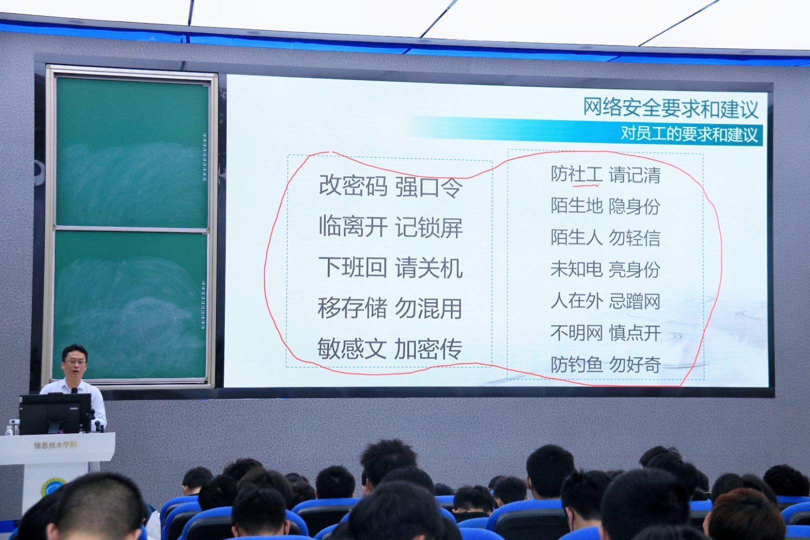 现代信息和网络技术是一把双刃剑,本次讲座让同学们意识到保护个人信息的重要性,懂得“网络安全始于心,网络安全践于行”的道理,同时切实提升同学们对网络风险的辨识和防护能力。