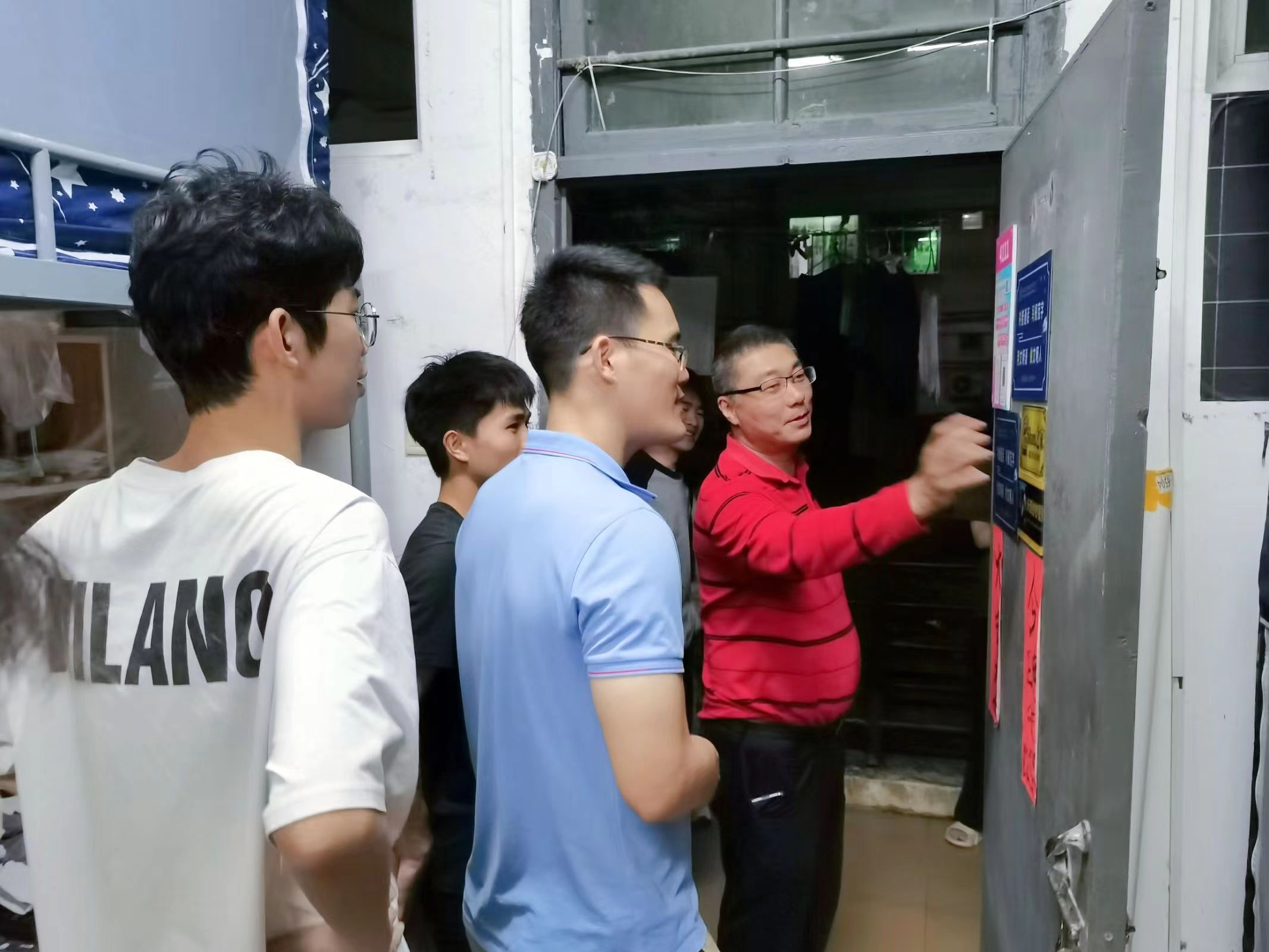 3月4日晚,信息技术公司党总支副书记黄守官、学工办负责人唐图及全体辅导员和团学干部们到员工宿舍