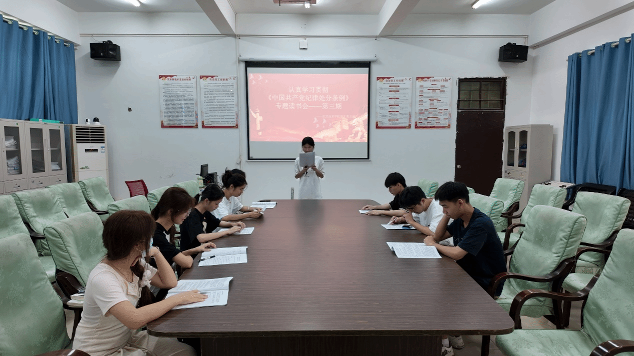 本期读书会通过个人阅读、集中学习、观看视频等方式,逐条学习《中国共产党纪律处分条例》,这不仅提升了同学们的政治觉悟和纪律意识,也使他们深刻认识到无论在哪个领域,都要以高度的职业道德和法律意识指导自己的行为。同学们纷纷表示,要将遵规守纪作为自己的日常行为准则,切实将《条例》精神内化于心、外化于行。