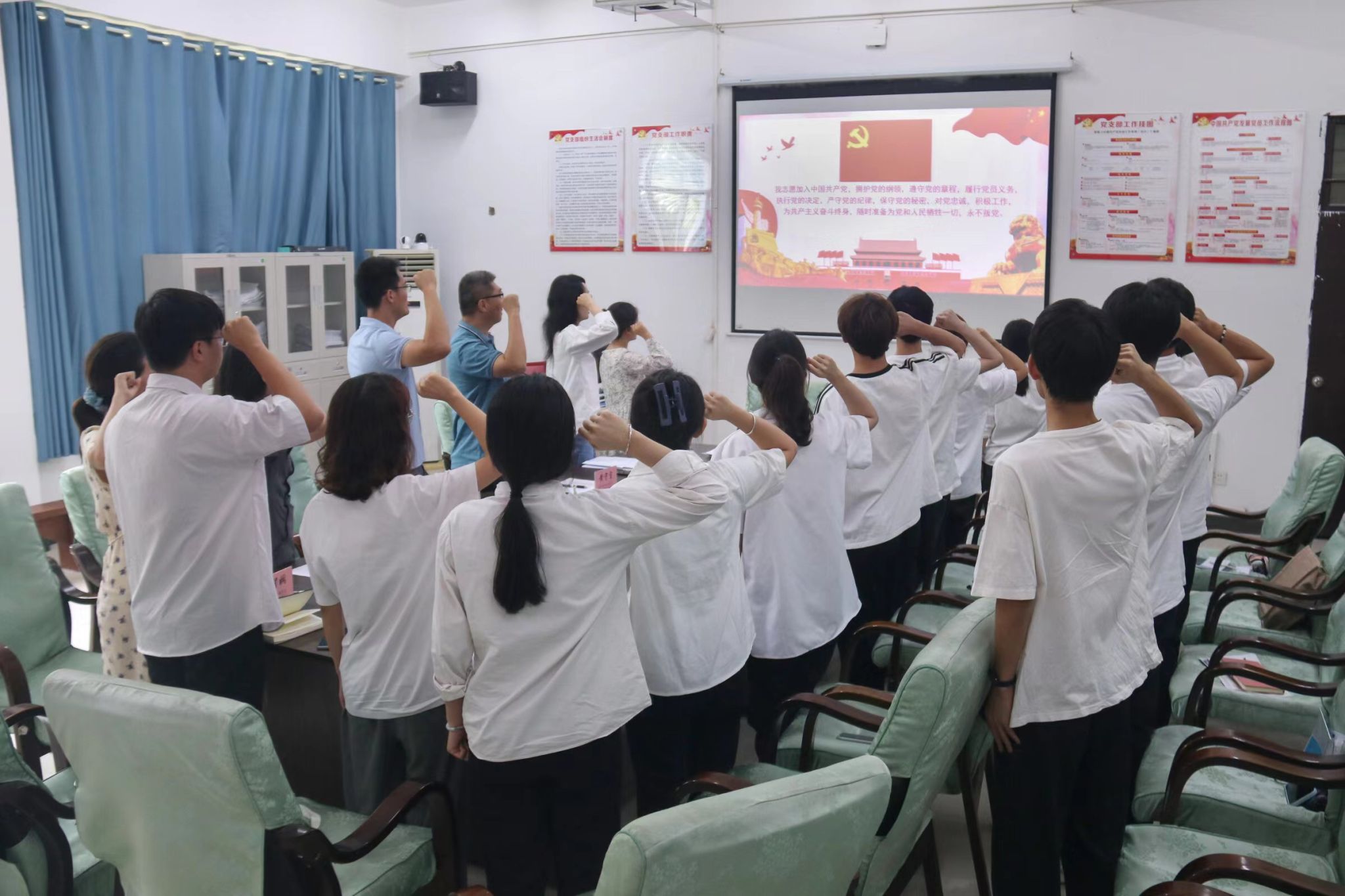 为进一步注入新血液,凝聚新力量,增强党的影响力和向心力,WilliamHill中文官方网站员工党支部于6月26日在4-213召开吸收预备党员会议。本次会议由员工党支部书记代晓明同志主持,信息技术公司党总支副书记黄守官同志、员工党支部宣传兼纪检委员唐图老师、员工党支部组织兼青年委员蔡守正老师,辅导员王智娴、吴淑亲老师共同参加此次会议。