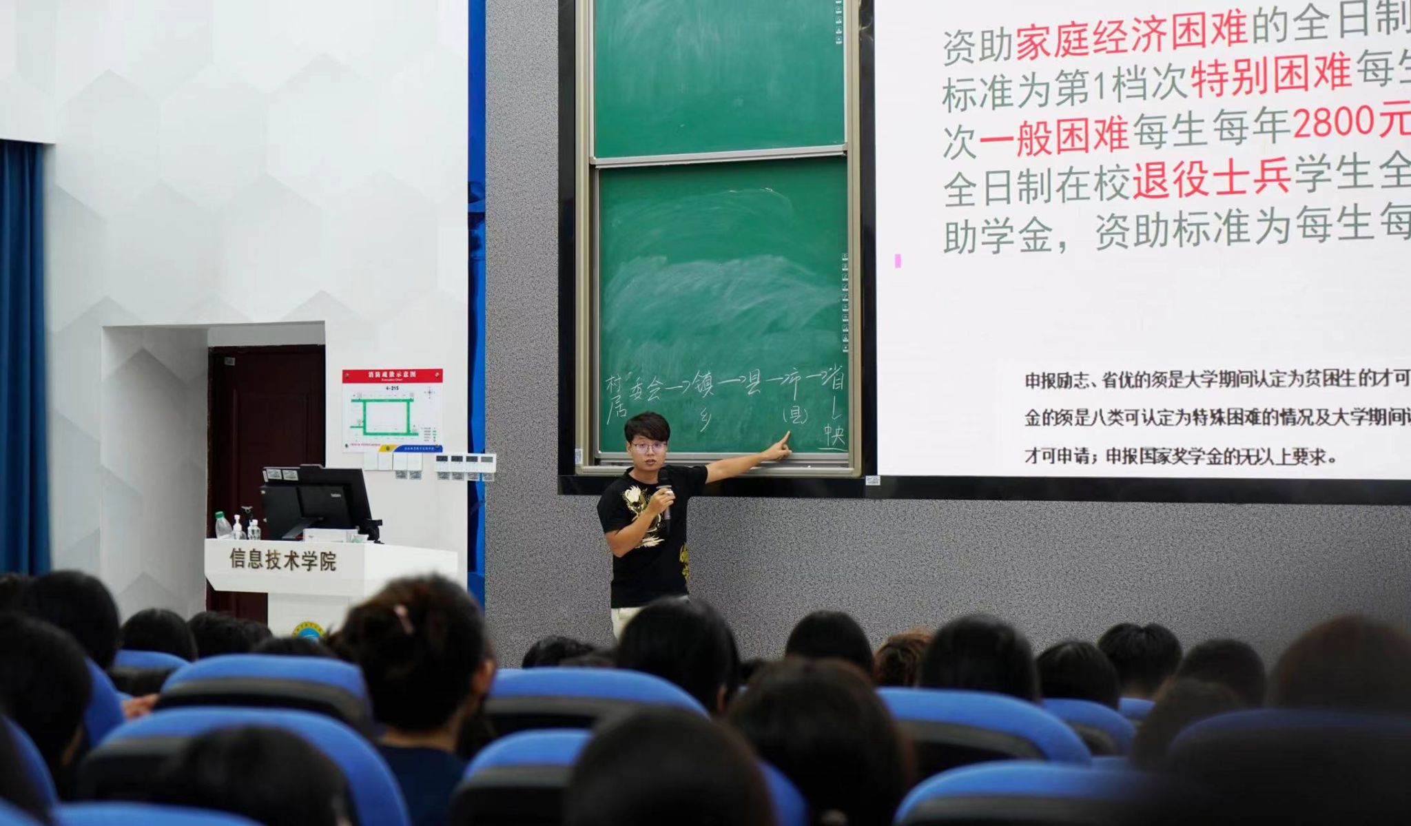 宣讲会上,符老师首先为新生们详细介绍了生源地助学贷款、助学金、奖学金等一系列资助政策。他不仅解释了各项政策的具体内容,还清晰地讲解了申请步骤,确保每位有需要的员工都能顺利获得经济支持。