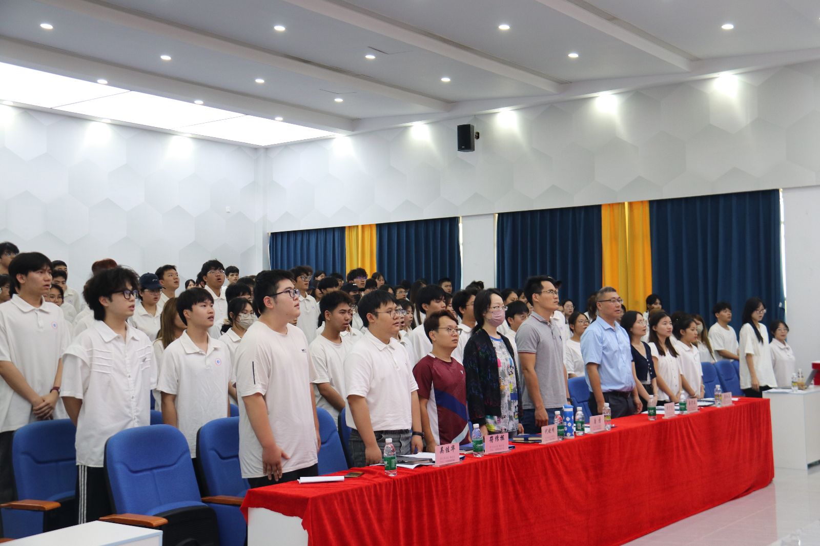 在庄重且激昂的国歌声中,本次会议正式拉开帷幕。首先由蔡守正老师宣读文明宿舍的表彰决定。
