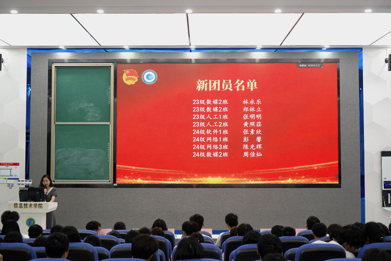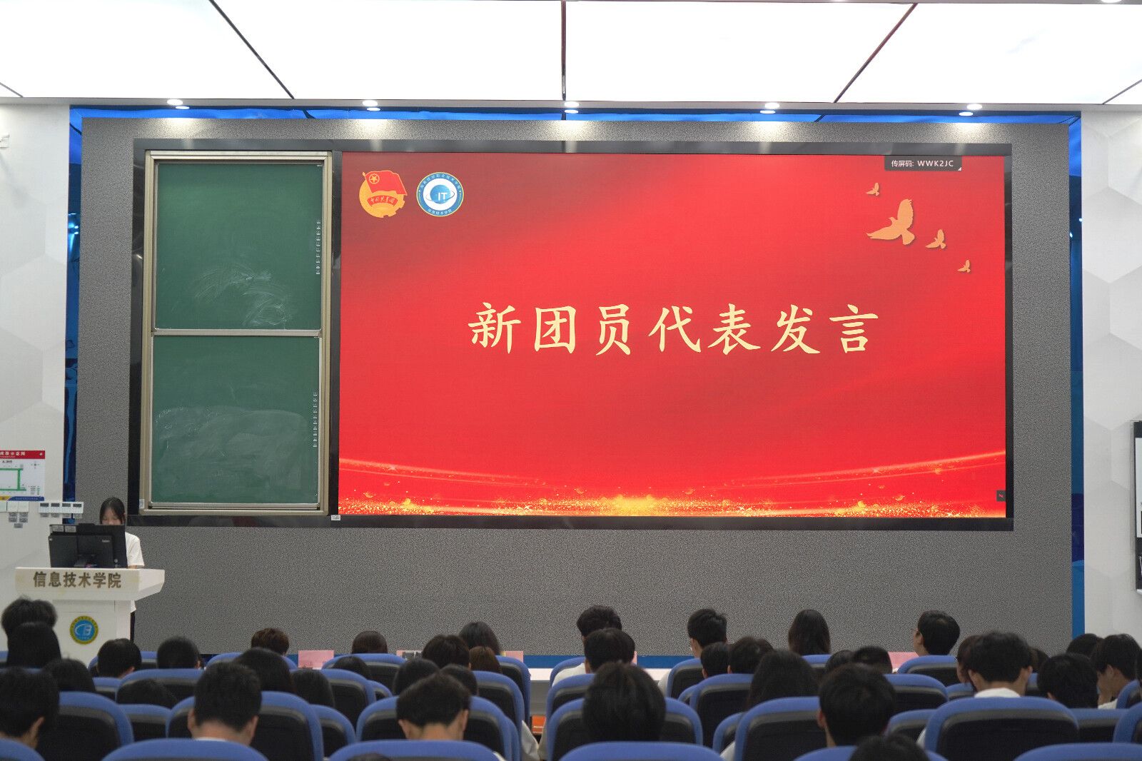 新老团员代表分别上台发言。他们言辞中充满着对共青团的热爱,新团员周佳灿则表达着对未来的期望和为团组织增光添彩的决心,老团员符方泰同学分享在团内的经验和感悟。