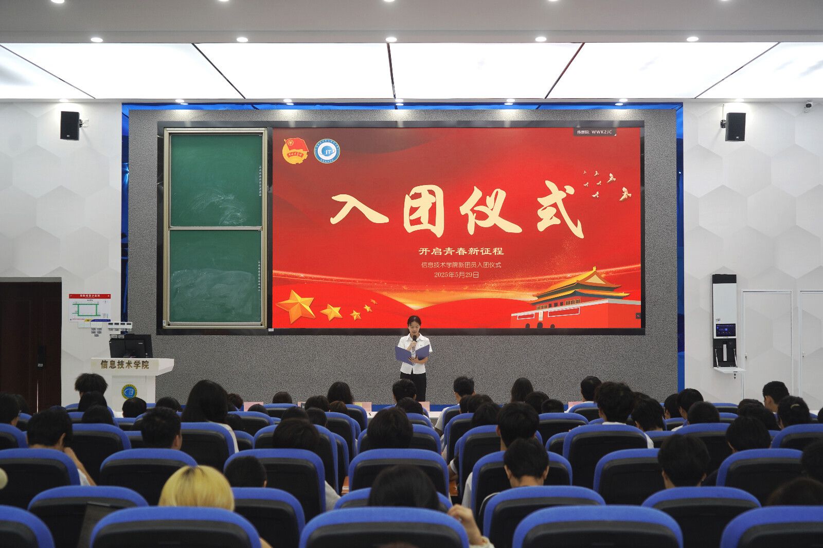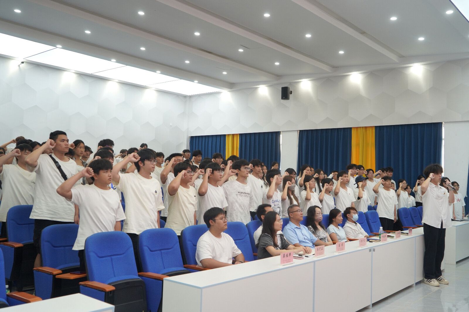 最后,全体人员奏唱团歌,激昂的歌声回荡在整个会场,激励着新团员以实际行动为国家发展贡献自己的青春力量。