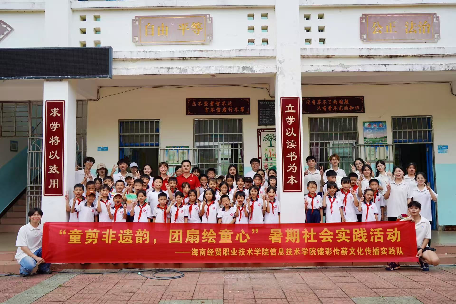 为传承弘扬传统文化,助力非遗技艺走进乡村,WilliamHill中文官方网站镂彩传薪文化传播实践队由辅导员吴佳华带队走进万宁市后安镇潮港小学,以团扇绘制、剪纸体验两项非遗体验为依托,为乡村孩子开启了一扇通往传统文化的“奇妙之门”。