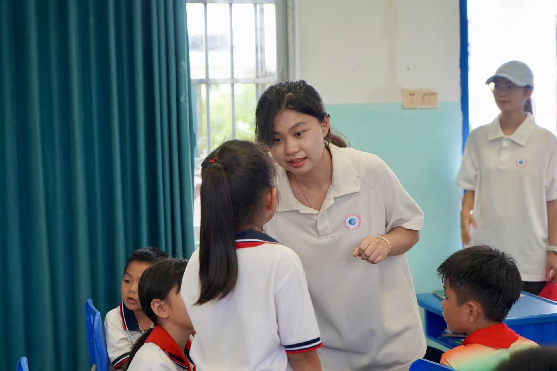 在 “团扇的魔法世界” 环节中,实践队成员首先为孩子们讲解团扇的历史。从古代的宫廷雅物到如今的民俗文化符号,让孩子们深切感受到团扇所蕴含的深厚文化底蕴。随后进入创作环节,空白的扇面和彩笔准备就绪,孩子们化身为 “小画家”。他们有的在扇面上描绘出山水意境,有的写下励志的文字,还有的创作了可爱的卡通形象。在创作过程中,实践队成员耐心指导绘画技巧,并与孩子们交流创意想法。一把把团扇成为了传统文化与童真创意完美融合的 “艺术品”。