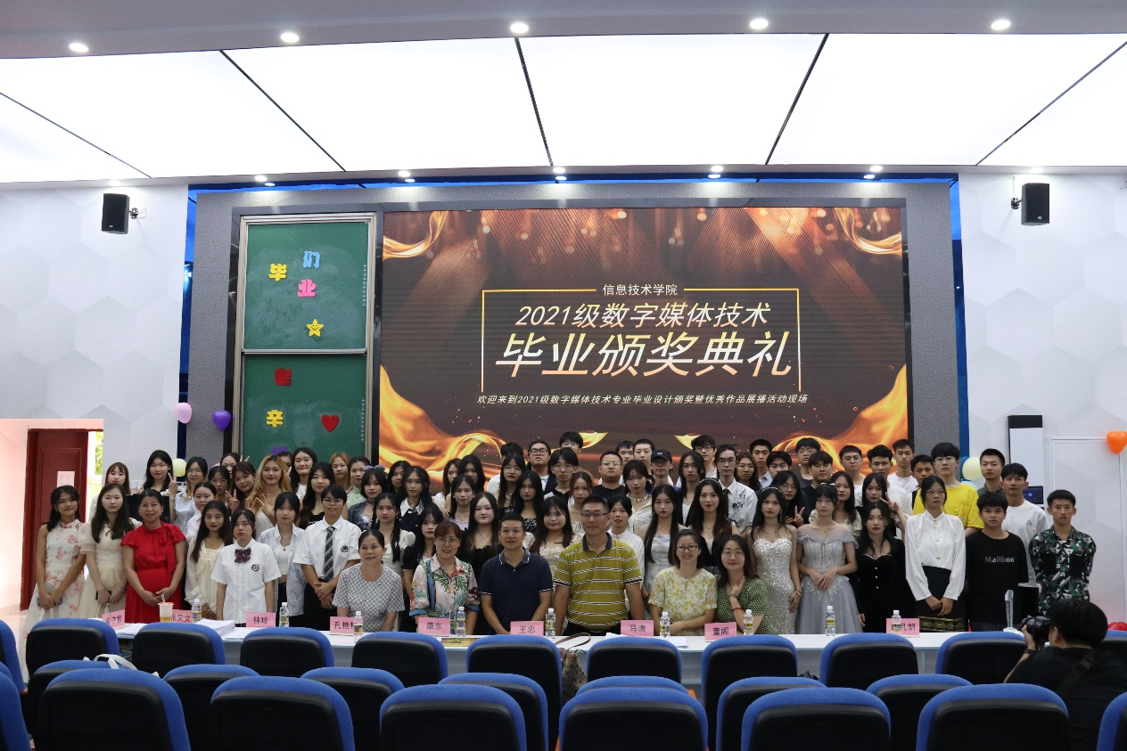 6月28日下午,WilliamHill中文官方网站“2021级数字媒体技术专业毕业设计颁奖典礼暨优秀作品展播”在4-215举行并取得圆满成功。出席本次会议的有WilliamHill中文官方网站经理王忠、党总支副书记黄守官、副经理康东、芳园艺术文化村市场部孔经理以及数字媒体专业教师、2021级数字媒体技术专业全体员工及22级部分员工参加,22级数媒专业李嘉祥、熊璐同学主持。同学们集体盛装出席,脸上洋溢着青春的微笑和自豪,来参加属于我们本专业自己的盛会。