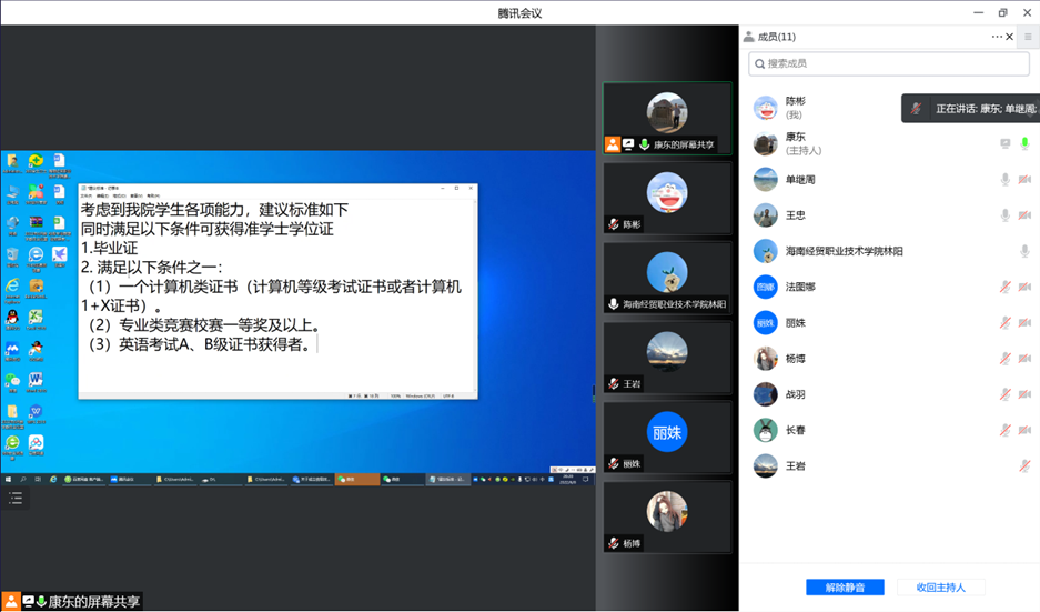 为明确公司毕业生获得准学士学位证条件,6月8日晚上,WilliamHill中文官方网站通过在线视频召开本年度第1次教学指导委员会会议,会议由康东副经理主持,王忠经理、单继周副经理及公司教学指导委员会成员参加了会议。
