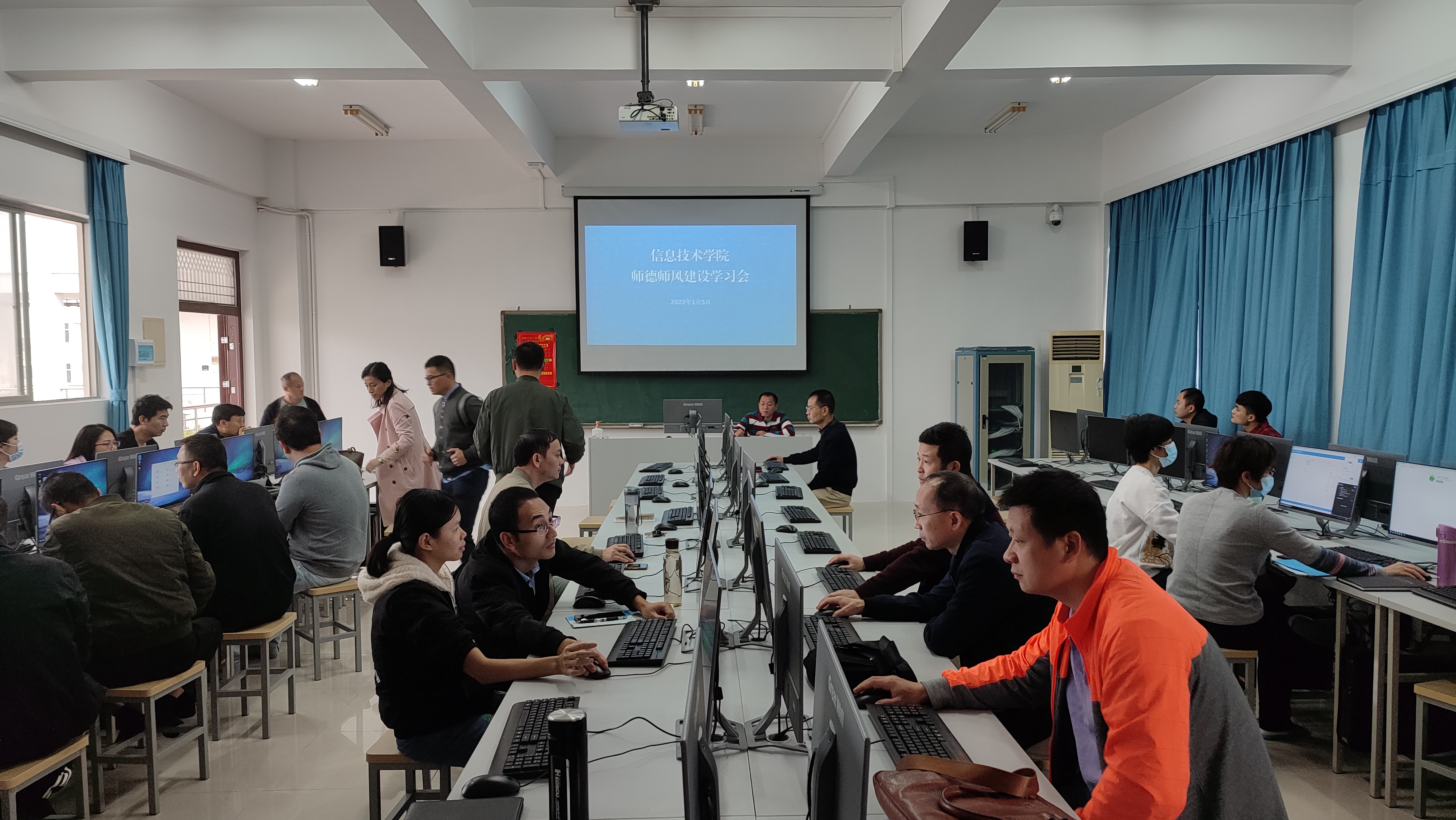 为深入贯彻学习习近平新时代中国特色社会主义思想,进一步加强师德师风建设,努力建设一支“有理想信念、有道德情操、有扎实学识、有仁爱之心”的员工满意的好老师,1月5日上午,公司在4-511B教室召开师德师风建设学习会议。全体教职工参加会议,会议由公司党总支书记孙金主持。