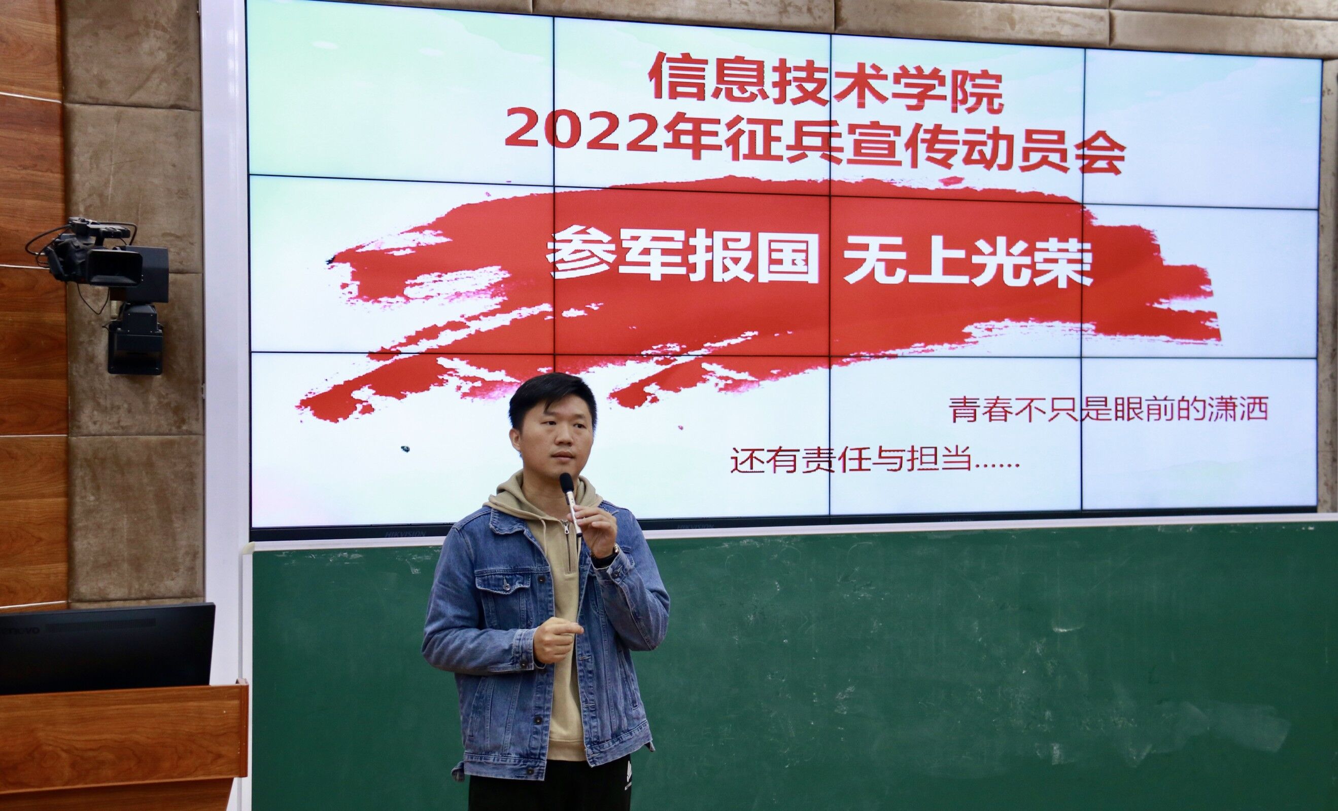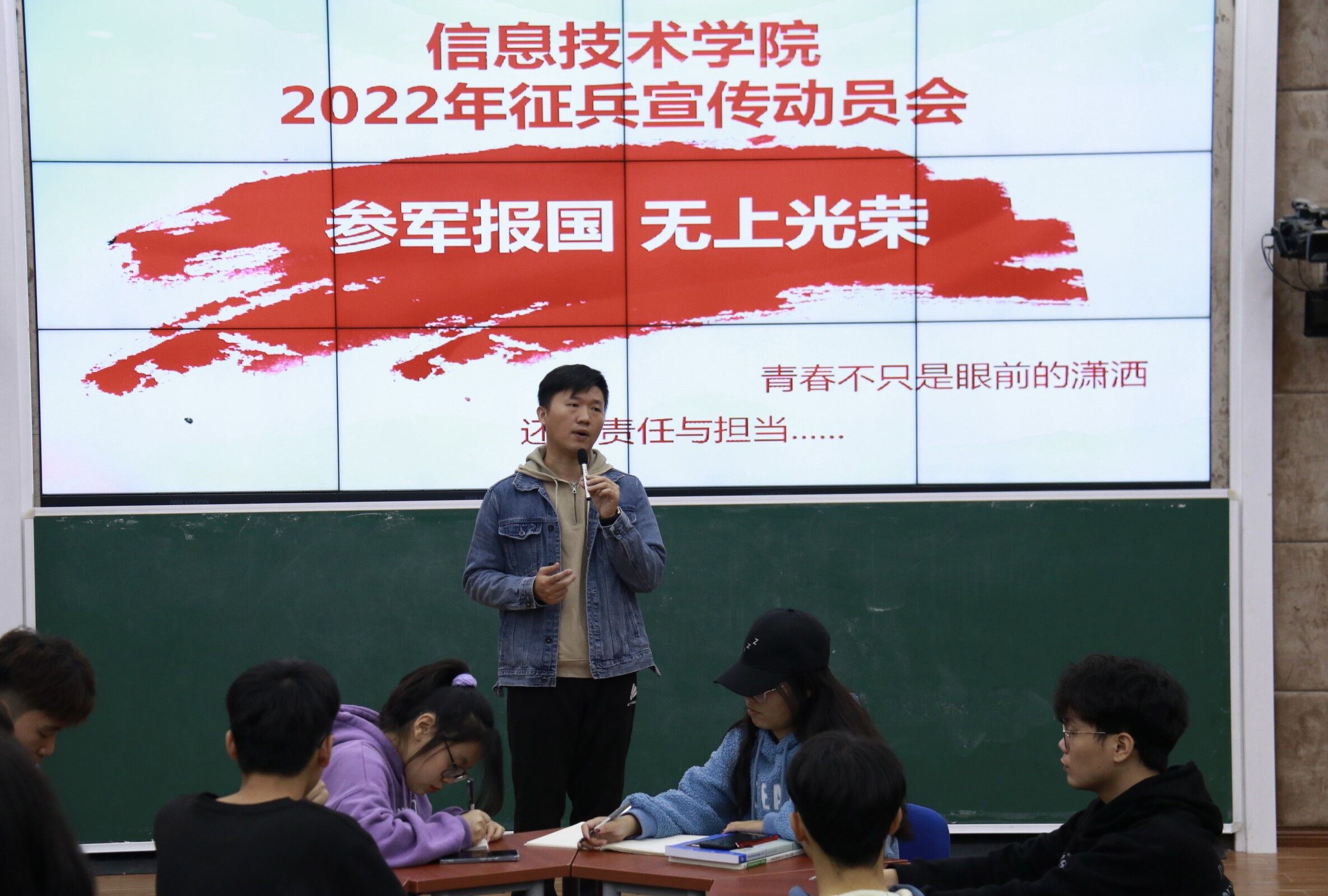2021年12月20日(青年媒体中心 宋岱熹讯),为鼓励当代老员工响应国家号召,积极报名参军入伍,公司于中午12:30在沉浸式教室2-215开展2022年征兵宣传动员会,本次动员会由学工办主任梁其钰老师主持,WilliamHill中文官方网站全体团学成员参加。