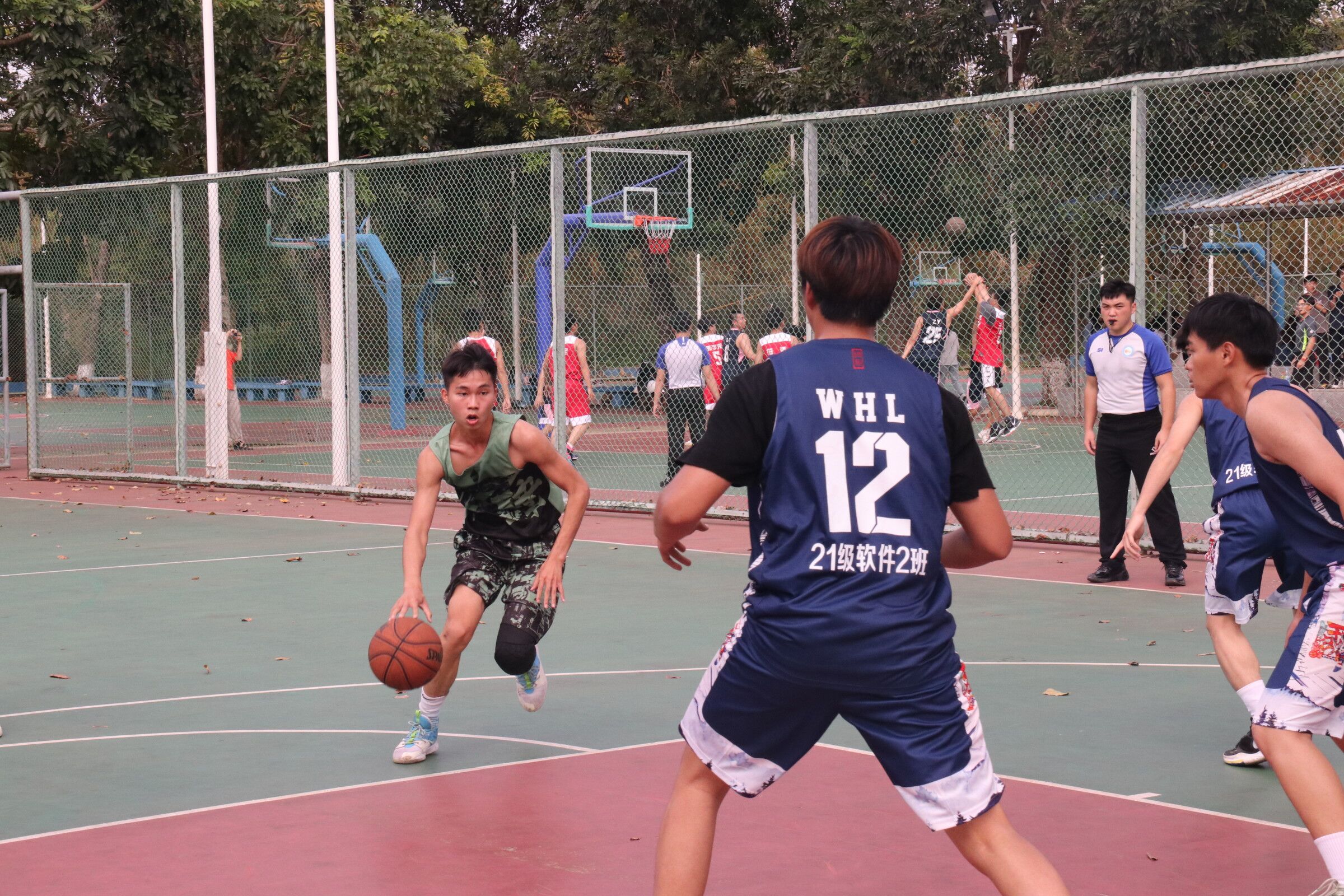 镜头转向第二组,场上的激烈“战斗”点燃了在场观众的热情,学子们都为自己支持的球队呐喊助威,比赛双方你来我往,不甘示弱,每一次进球,观众席便会传来阵阵掌声,中场休息球员们马上围在一起商讨对策,替补队员也在场下整装待发,随时出战。最终两支队伍比分为39:43,软件3+2班获胜。