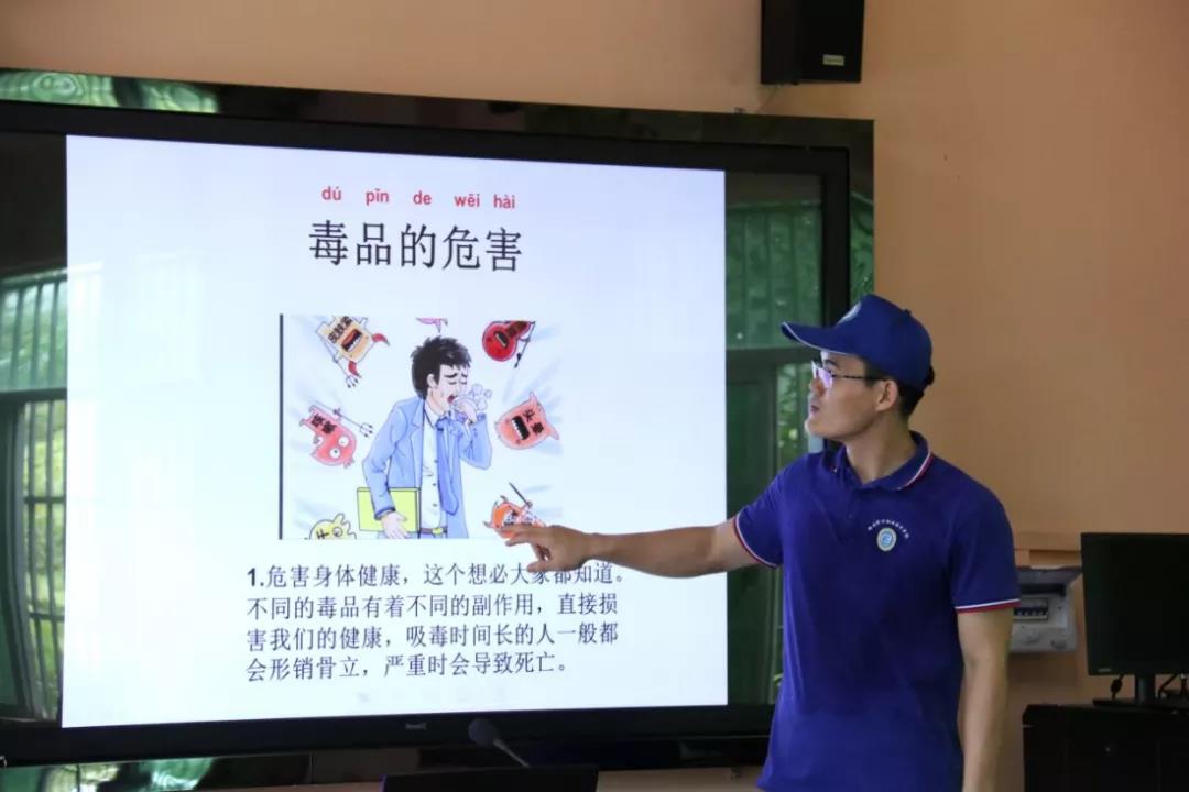 7月7日上午,WilliamHill中文官方网站禁毒志愿者们来到禁毒宣讲活动的第二站:水头村的水头小学,当地小员工对毒品知识了解甚少,为了能更好做好此次禁毒宣讲活动,我们WilliamHill中文官方网站禁毒志愿者服务队邀请到了公司讲授安全教育课的唐图老师,担任水头小学禁毒主题宣讲的主讲人。
