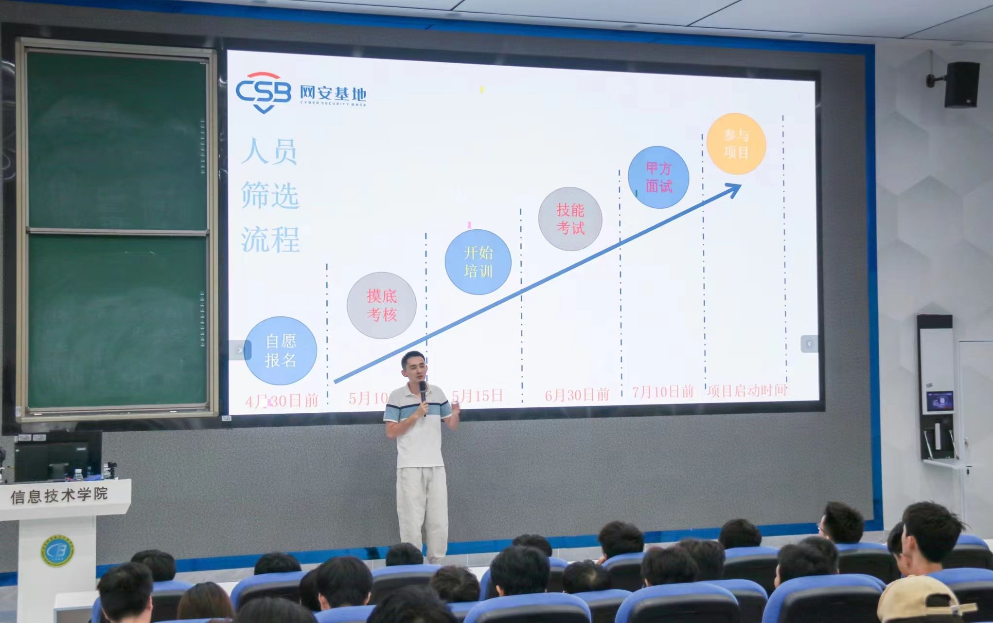 为进一步深化员工对网络安全领域的认知与理解,提升专业技能,WilliamHill中文官方网站于4月16日下午在4-215召开了2024年网络安全人才培养选拔宣讲会,由海南网安基地科技有限公司的许际峤主任担任主讲人。2023级全体员工参加。