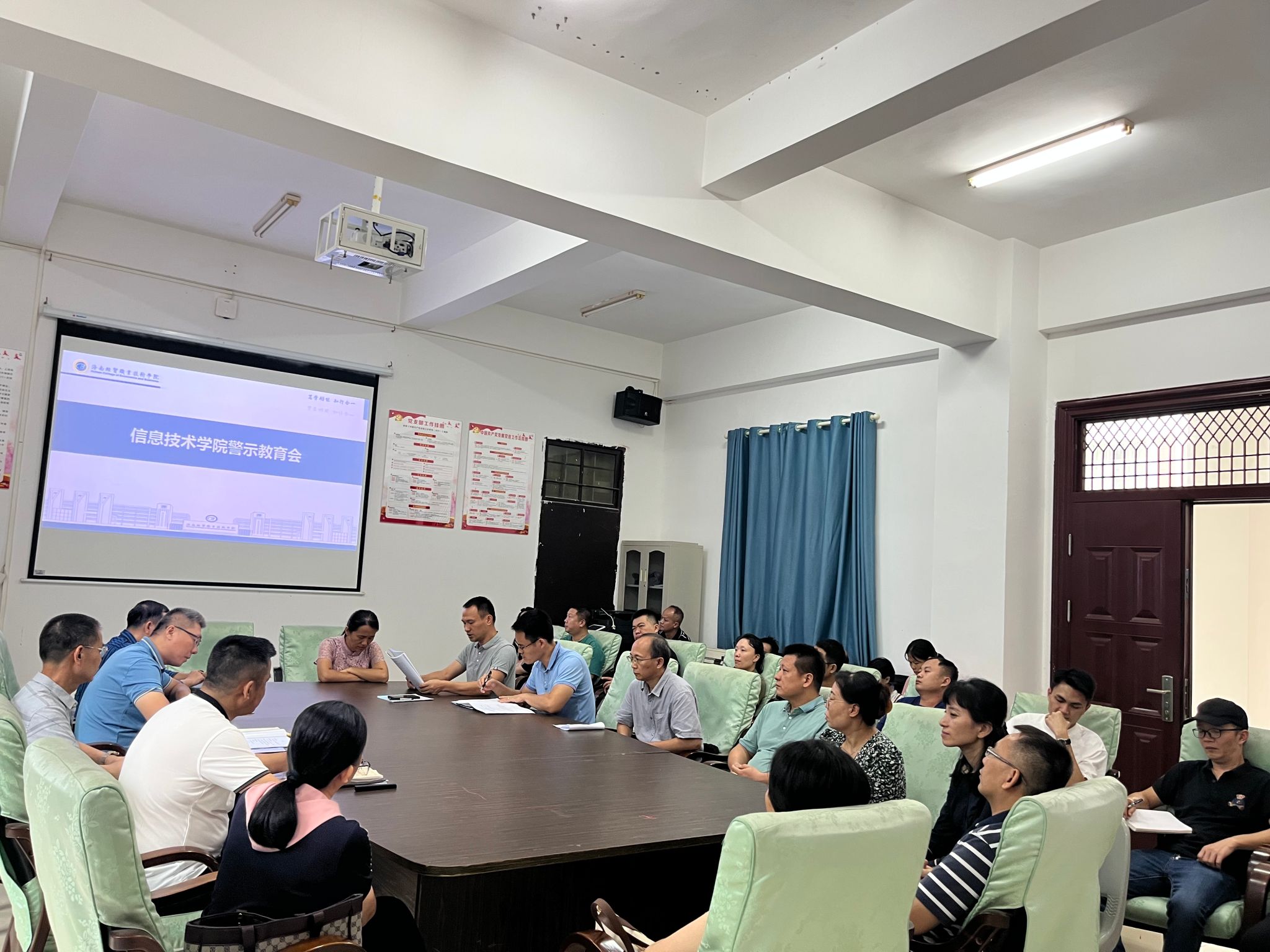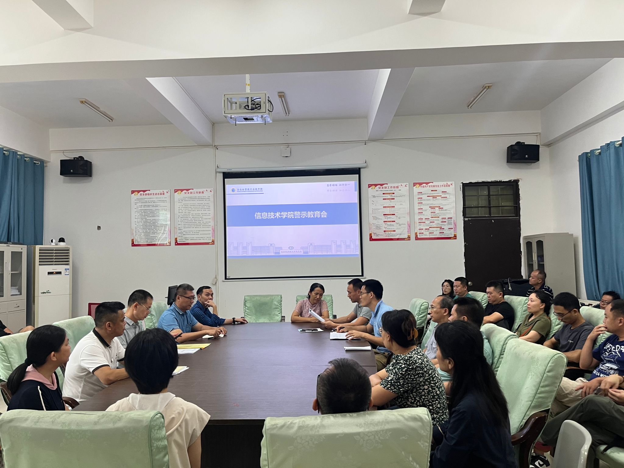 6月25日,公司在4-213会议室召开警示教育大会。大会由党总支书记符胜主持,公司全体教职工参加。