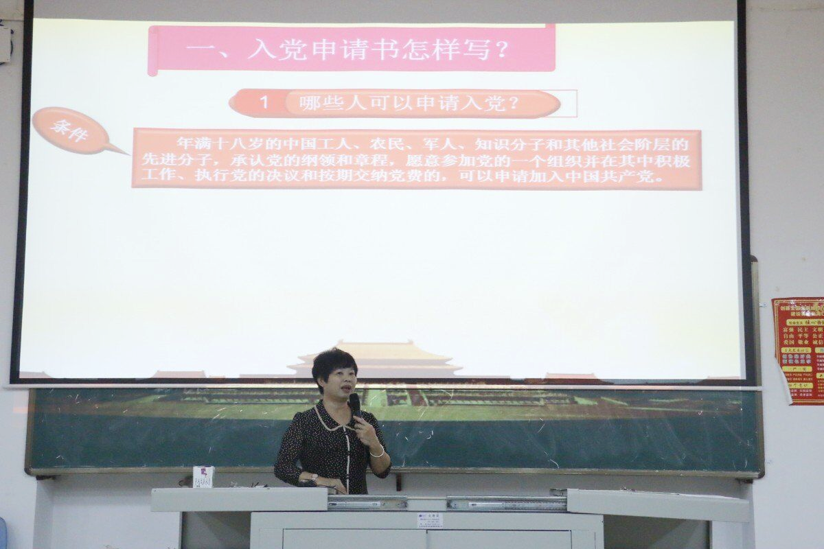 此次演讲内容包括:1.党的生日与全国党员的总数,2.写申请书的格式与注意事项,3.入党积极分子的确定和考察,4.预备党员的接收和转正,5.写思想汇报的格式。