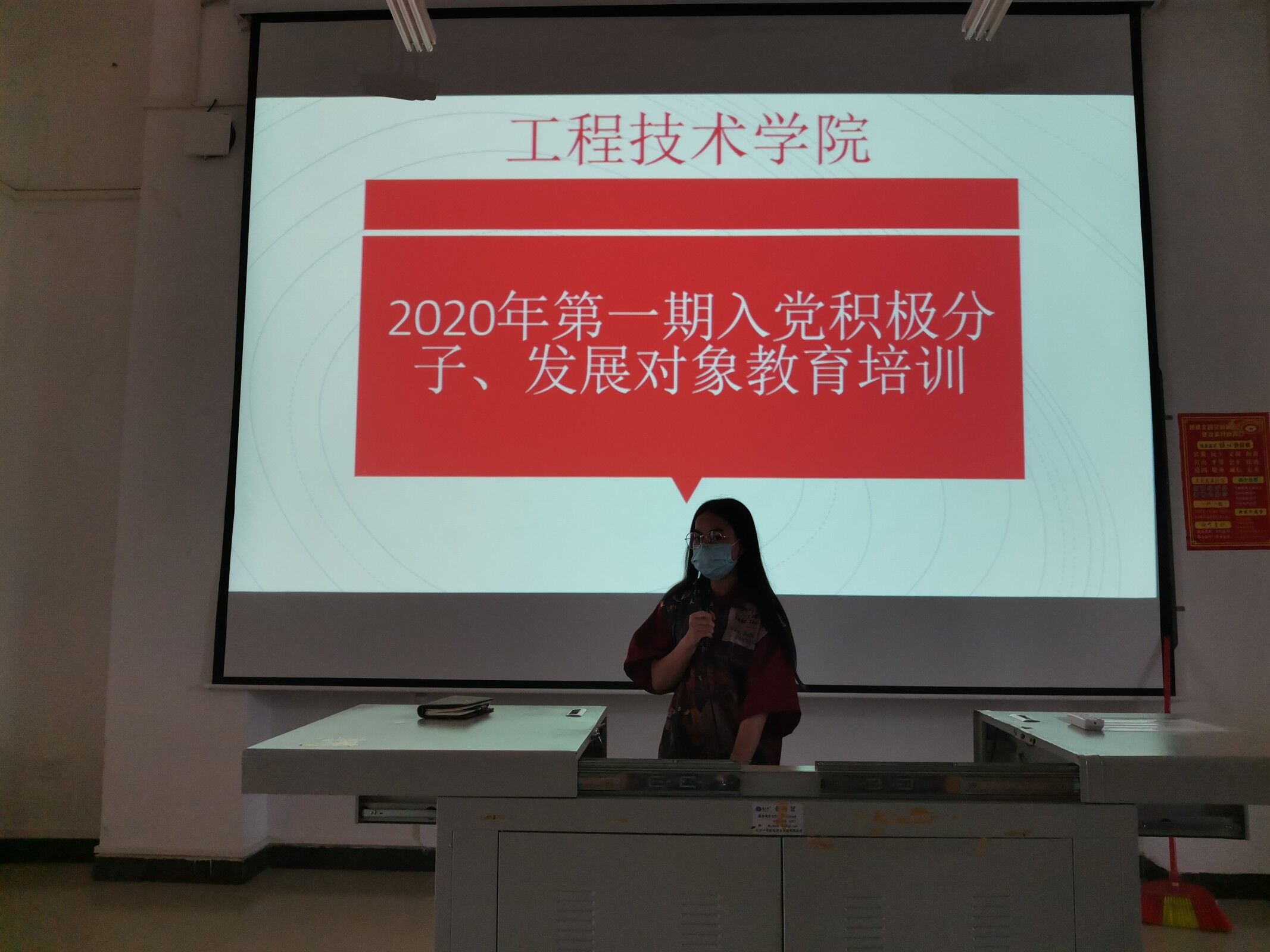 2020年5月26日(院青年媒体中心 钟智杰报道)讯,根据公司党委部署,公司在教学楼2-408教室内召开了“2020年第一期入党积极分子、发展对象教育培训”主题会议。本次会议由公司团总支组织部部长吴亚亚和其干事窦粤洋主持,参加此次会议的有公司的入党积极分子、发展对象,党员和预备党员。