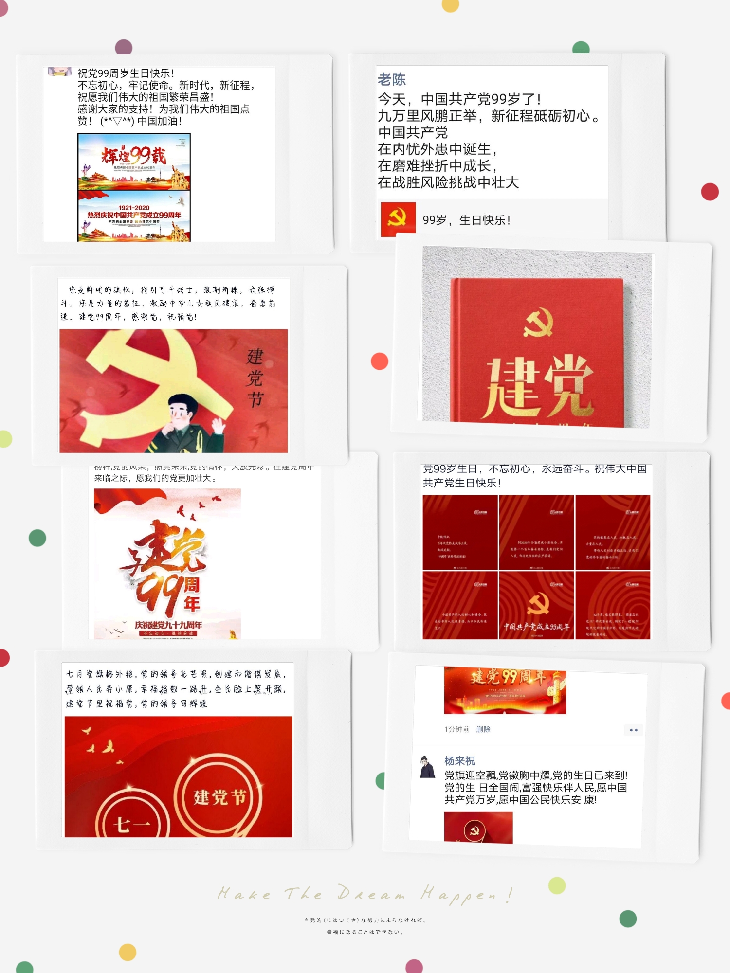 6月30日-7月1日,为庆祝我党99华诞献上最真挚的祝福,公司各班团支书召开“为我党99华诞献祝福”主题班会并做记录、拍照。