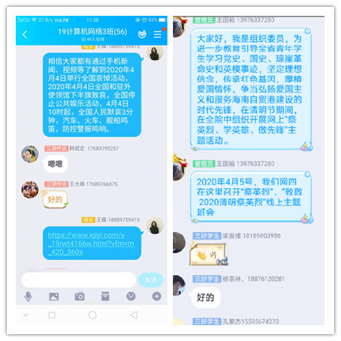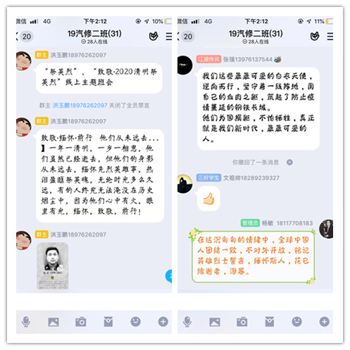 一、各班召开 “祭英烈”、“致敬·2020清明祭英烈”线上主题班会