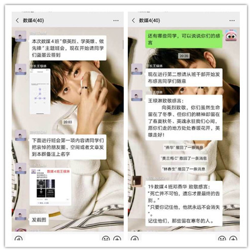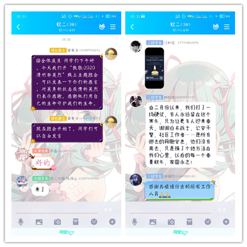 二、员工通过微信、QQ等线上平台致敬为抗击新冠肺炎疫情斗争牺牲烈士