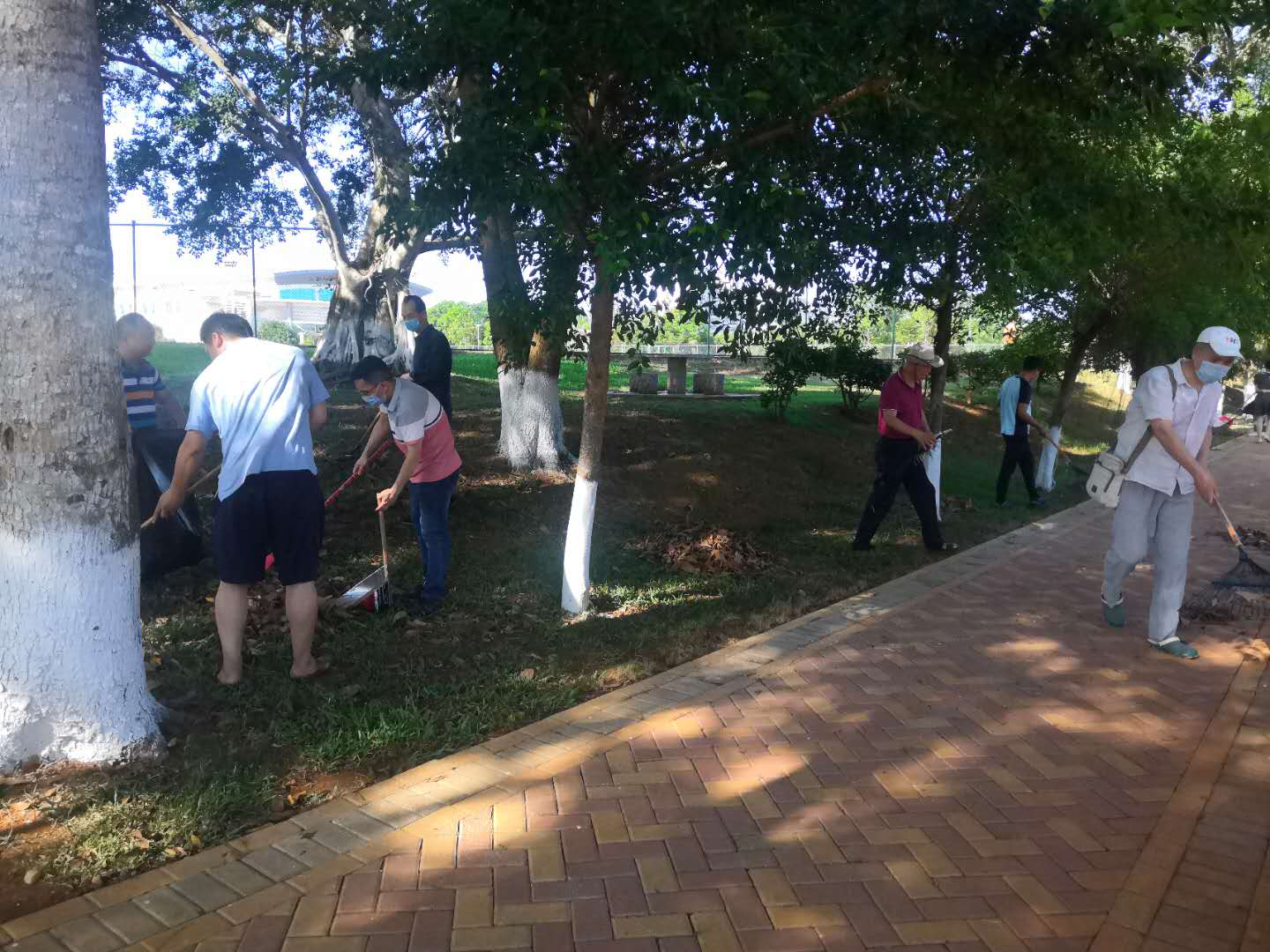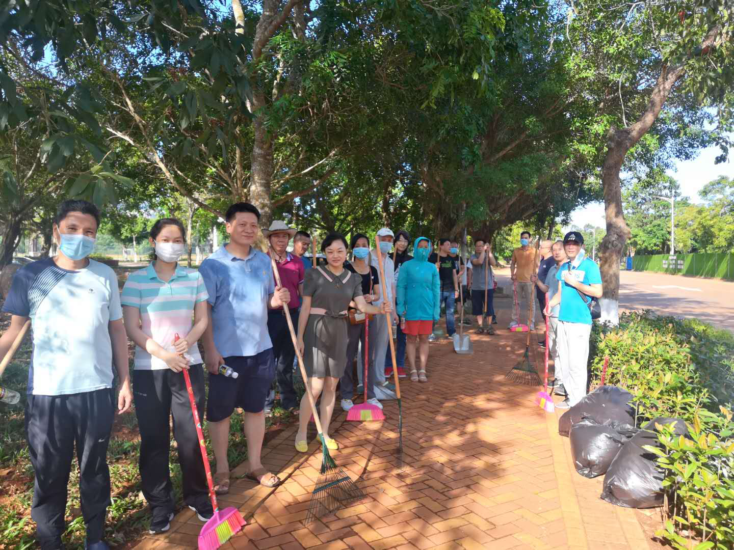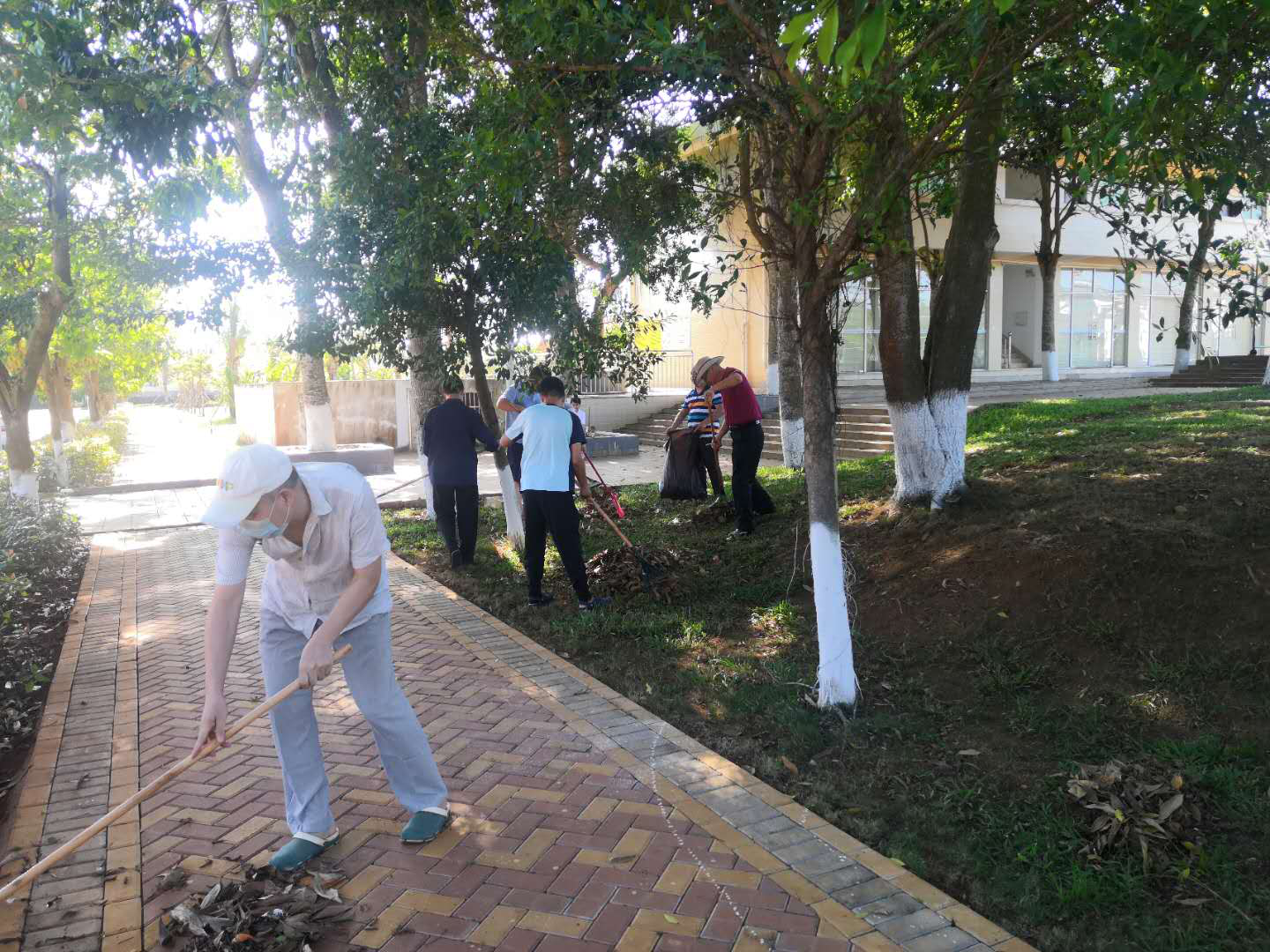 校园卫生主要清扫负责区域的白色垃圾、落叶、小碎石等,教室主要清洁地面、桌椅等,在36℃的高温天气下,老师们撸起袖子,有的清扫落叶,有的清理垃圾,有的打扫教室地面,有的整理教室桌椅,干得热火朝天、汗流浃背。清理过后,经贸北路干干净净,垃圾摆放整整齐齐。