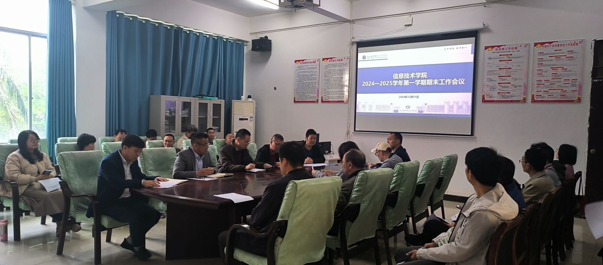 2024年12月31日,公司在4-213会议室召开2024-2025学年第一学期期末工作会议。会议由党总支书记符胜主持,信息技术公司党政领导及全体教职工参加会议。