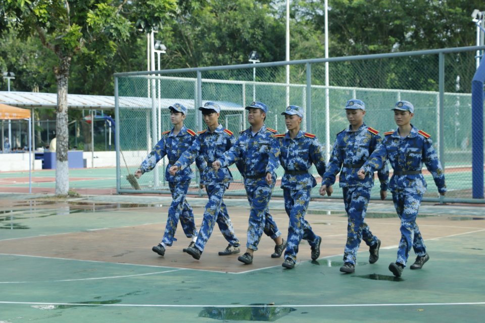 尽管赤日当空,但新同学的热情不减,精神抖擞地参与到了训练当中。军训只是老员工活的一个开始,一段小插曲,但是,相信经过了军训的磨练,同学们会有很大的收获,军训中学会的东西也将会使大家终身受用。此刻,军训仍然如火如荼地紧张进行着。在夕阳的余辉中,我们看到了教官严格训练的场面,新生刚毅充满活力的脸庞,同时也感受到了辅导员老师们对新生的期望与关心。