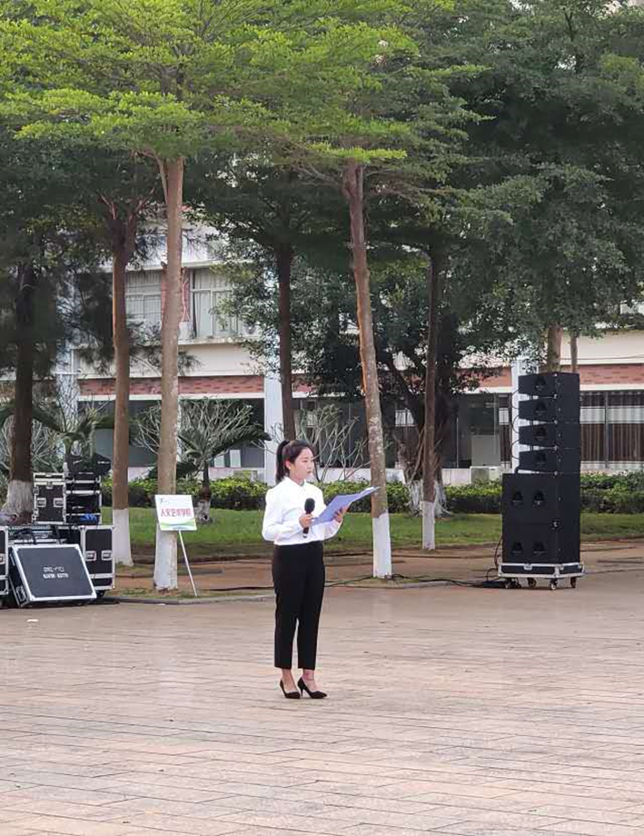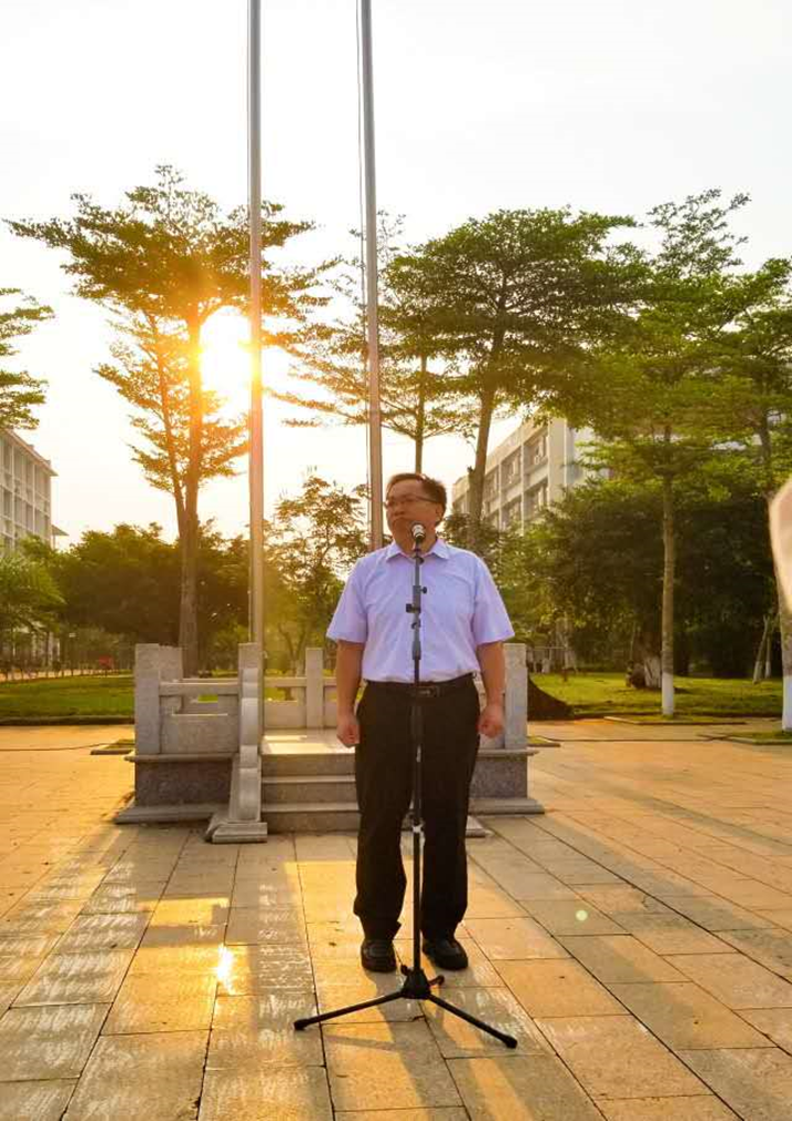 首先,在李雨馨同学的主持下,全体人员进行了庄严升国旗仪式。伴随这国歌声的落下,仪式接着进行了第二项,由员工代表郭华华做了国旗下演讲。作为员工代表发言的他用自己的亲身经历讲述了自己对于做一名幸福的高职生的理解,只有不懈的努力奋斗才能实现扩大自身的价值并走向幸福的未来,走向作为一名幸福高职生美好的未来。