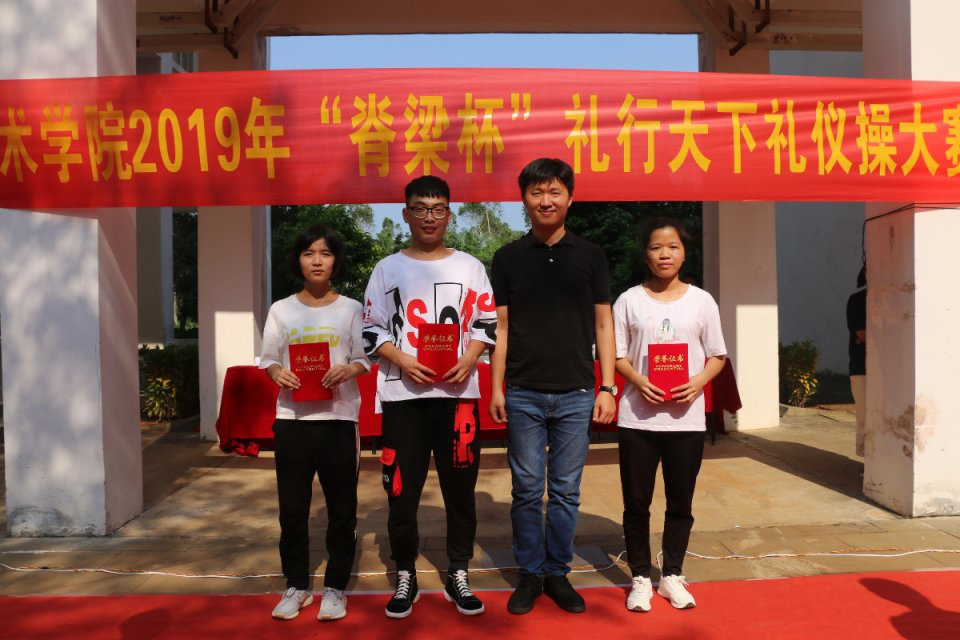 2019年4月9日下午两点整(青年媒体中心报道 许生平)讯,公司在三教学楼下举行了脊梁杯”礼行天下礼仪操大赛由谭超铨和蔡玉意主持,作为此次礼仪操比赛的评委有陈亚芳老师、梁其钰老师、周恺老师、代晓明老师、郭蓉佳老师,刘麦老师、张晋霞老师和周书妍老师,以及公司团学青成员参加,参赛的是公司18级全体同学。