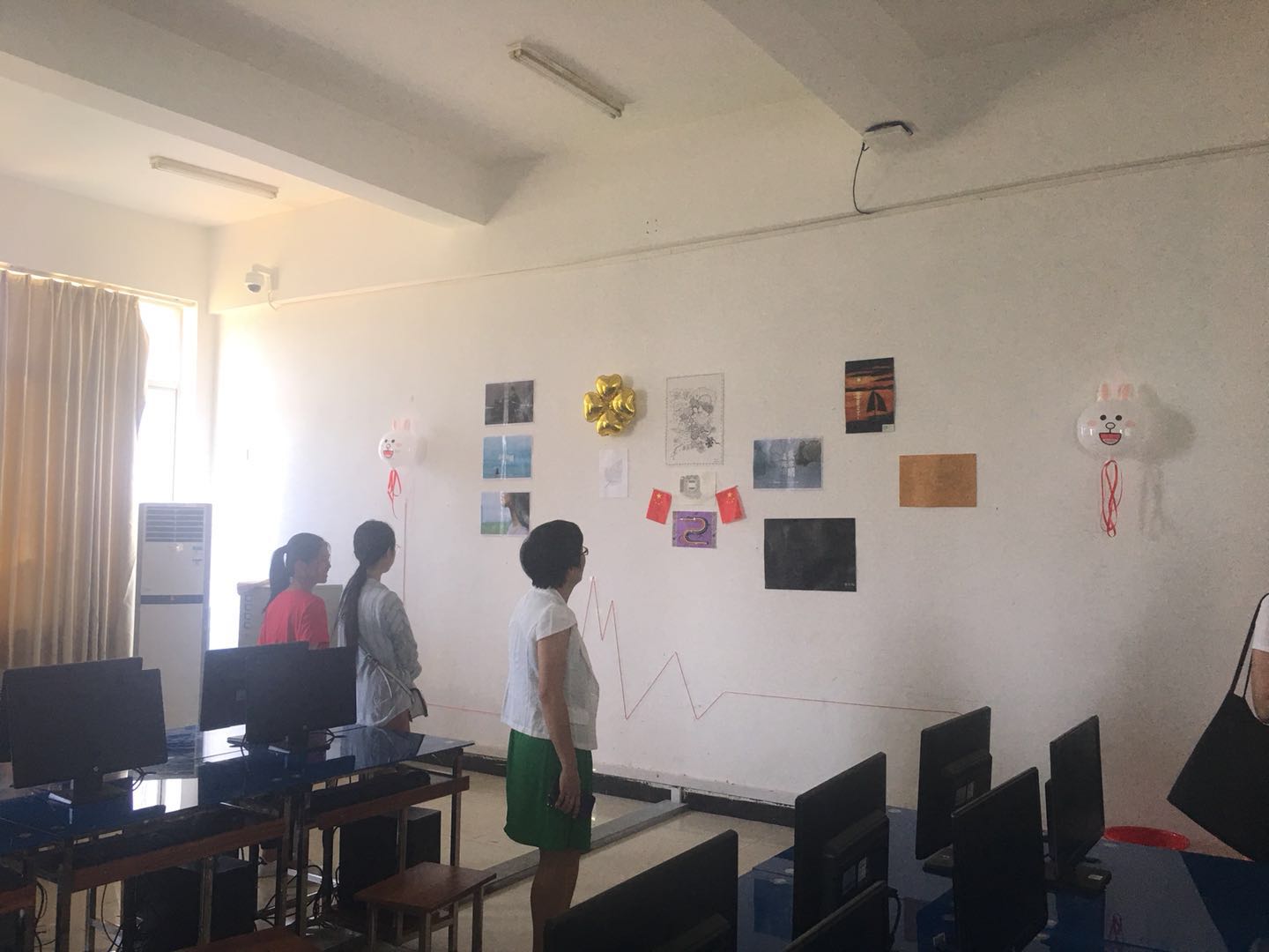 参与本次考察工作的老师进入班级后,班级的负责人带领老师参观了整体班级建设,针对本班的文化及规划做了详细的介绍。五颜六色的彩笔、各式各样的气球、有趣的涂鸦、板报的丰富内容,经过同学们的共同努力,使宽敞明亮的教室瞬间变得生机勃勃,充满了活力。