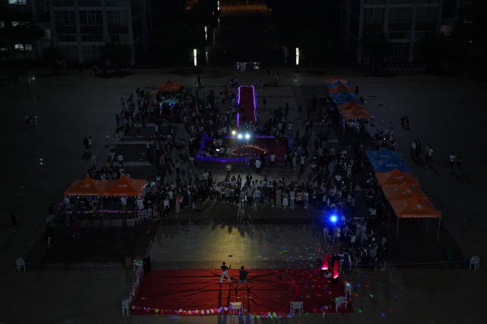 周末舞会在经贸广场上划分为六大区域,分别为唱歌区,跳舞区,素质拓展区,爱要大声说出来区、餐饮区和奖品区。整场互动游戏为主场,中间穿插两院工作人员精心准备的歌曲和舞蹈,主持人妙语连珠、节目表演美轮美奂、游戏环节互动充分,两院同学在阵阵欢声笑语中打成一片。公司学工办主任梁其钰老师,团学负责人唐图老师和17级辅导员周恺老师也参与了我们这次的活动。
