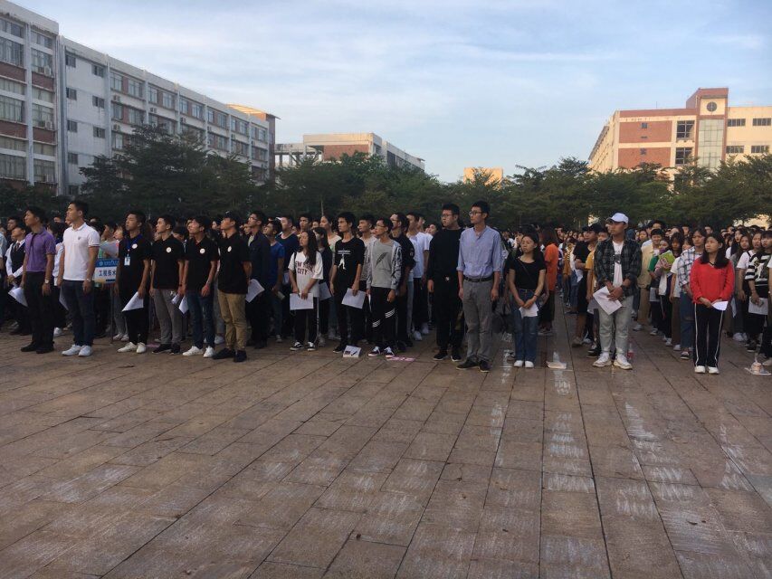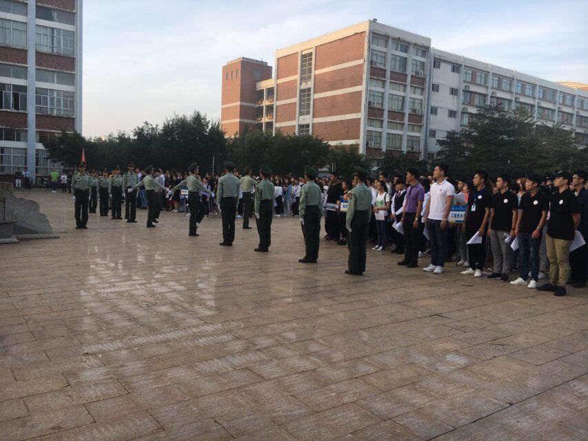 升旗仪式流程包括两项内容,依次是升旗仪式、宪法晨读。各班按照安排的位置,在经贸广场列队完毕。校国旗队着装干净整洁,迈着整齐的步伐朝国旗台走去,鲜红的五星红旗在全体师生的目光中缓缓升起。接下来,由领读宪法部分条款,师生跟读。