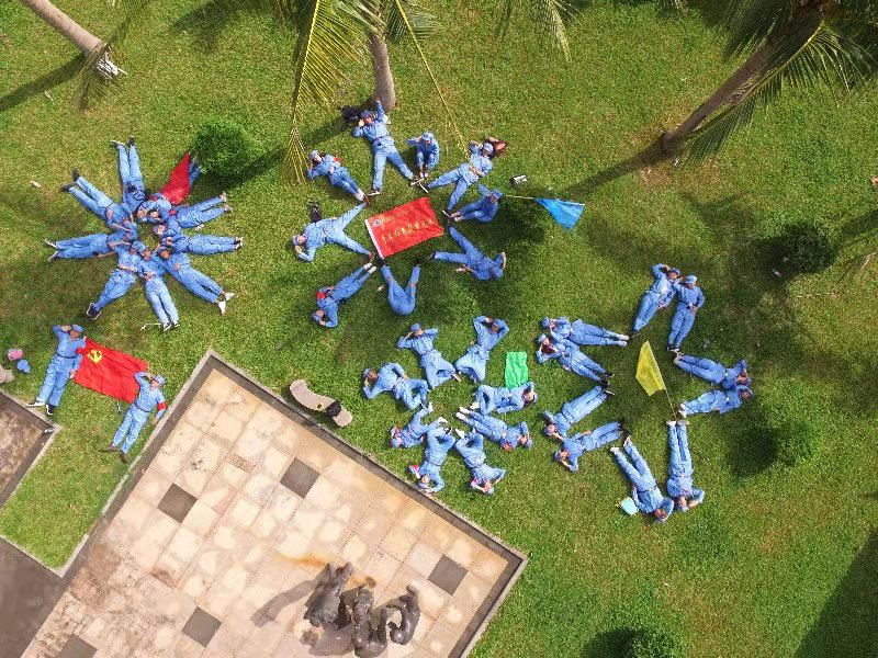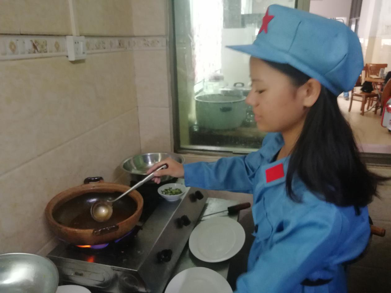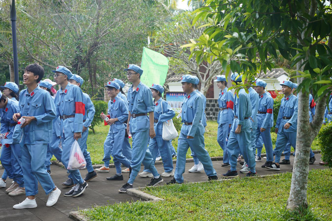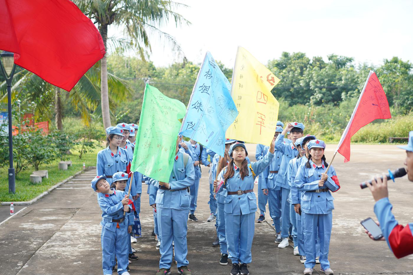 本次活动的亮点与特色在于穿戴统一的红军服、统一的红军帽、统一的红袖章前往革命圣地开展重走红军路活动。活动中党总支书记、副书记、员工支部书记、学工办主任、团总支负责人分别为员工上党课和讲革命故事,员工认真聆听党课和琼崖纵队二十三年红旗不倒革命故事。活动中举行了庄严的宣誓仪式,之后师生50人组成1个连队,编成4个战斗小组。战斗小组分别自制小组战旗、红军口号和编唱红军战歌,战斗小组还分别开展了各种实战演习演练活动,实战演习演练活动中培养了同学们团结协作克服困难努力奋进的团队精神。为了近距离体验红军生活,每个战斗小组队员亲自洗红军菜,亲自做红军饭,亲口品尝红军菜。