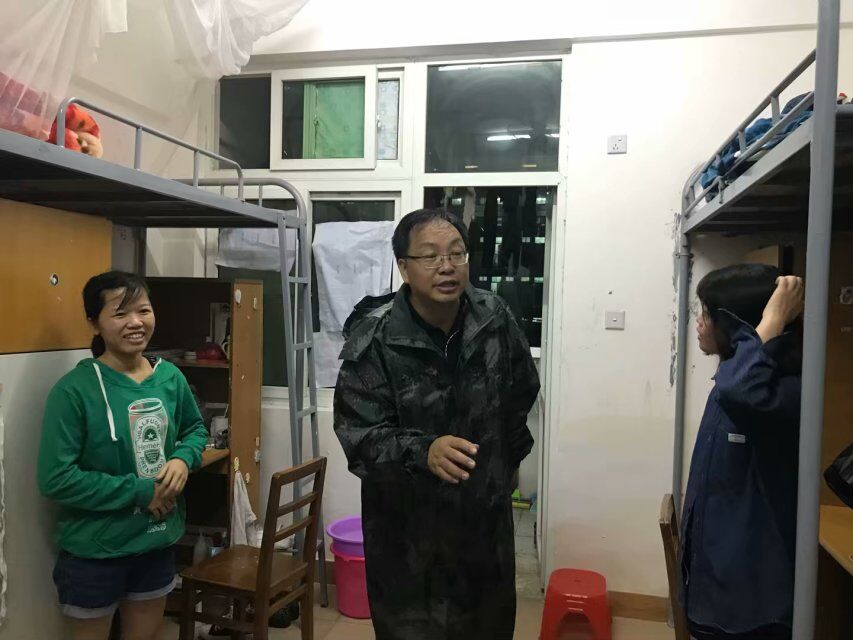 9月16日晚(青年媒体中心报道)讯,为了努力将台风给公司带来的损失降到最低点。 公司领导张继友,崔昌华,公司书记等,风雨同舟、齐心协力,形成了防御台风的强大合力。冒着风雨再次对宿舍楼进行检查,在检查过程中公司领导亲切地与同学们交谈。