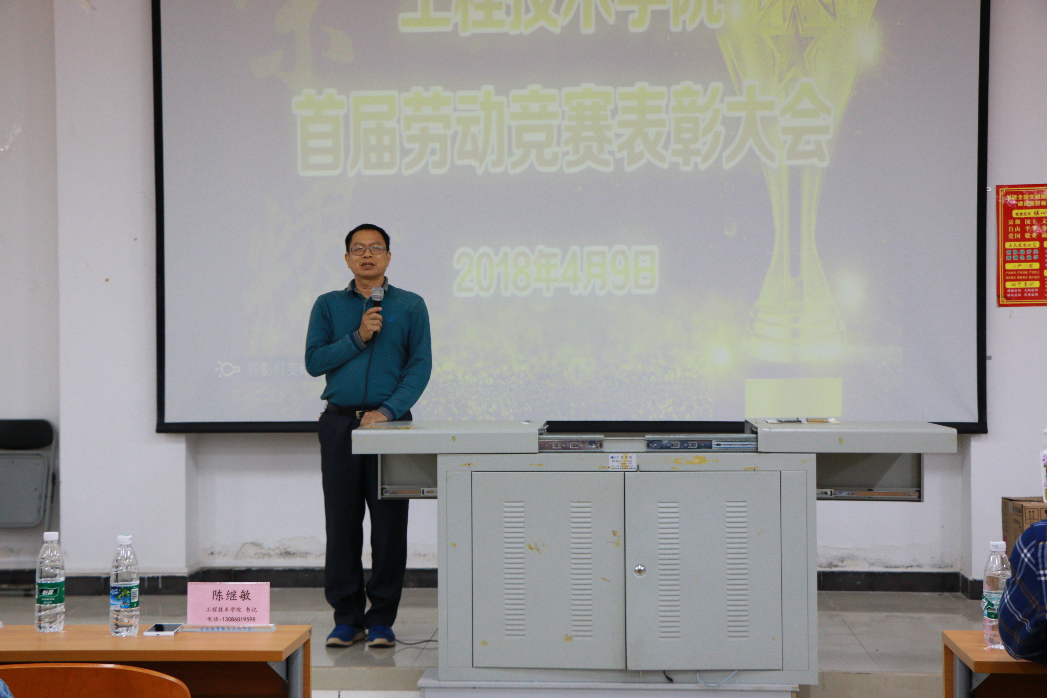 为激发同学们的劳动热情,增强班级凝聚力,2018年4月9日晚19时,公司在2教408教室召开首届劳动竞赛表彰大会,工程技术公司党总支书记陈继敏、副书记陈亚芳、学工办主任梁其钰与各辅导员出席,全体2017级新生参加,辅导员周恺主持会议。