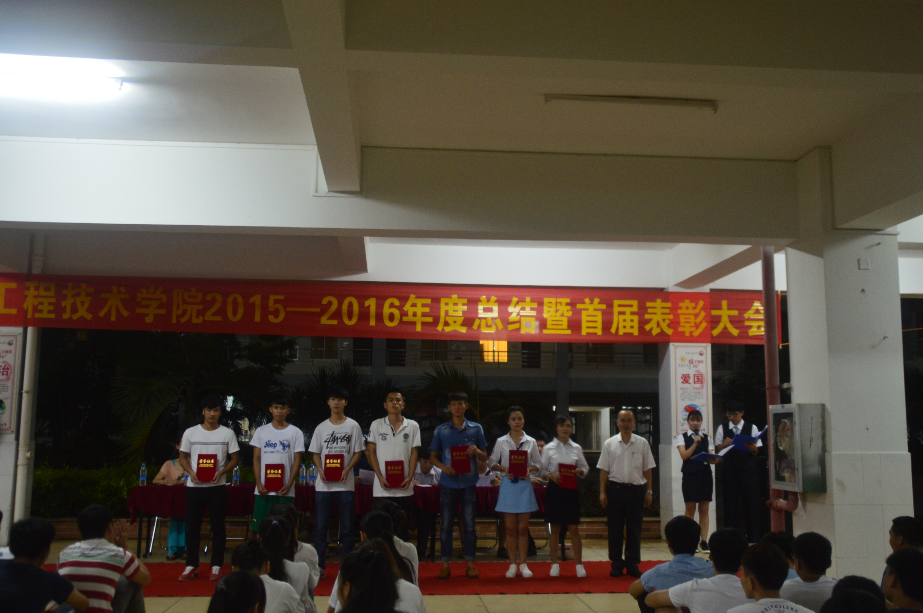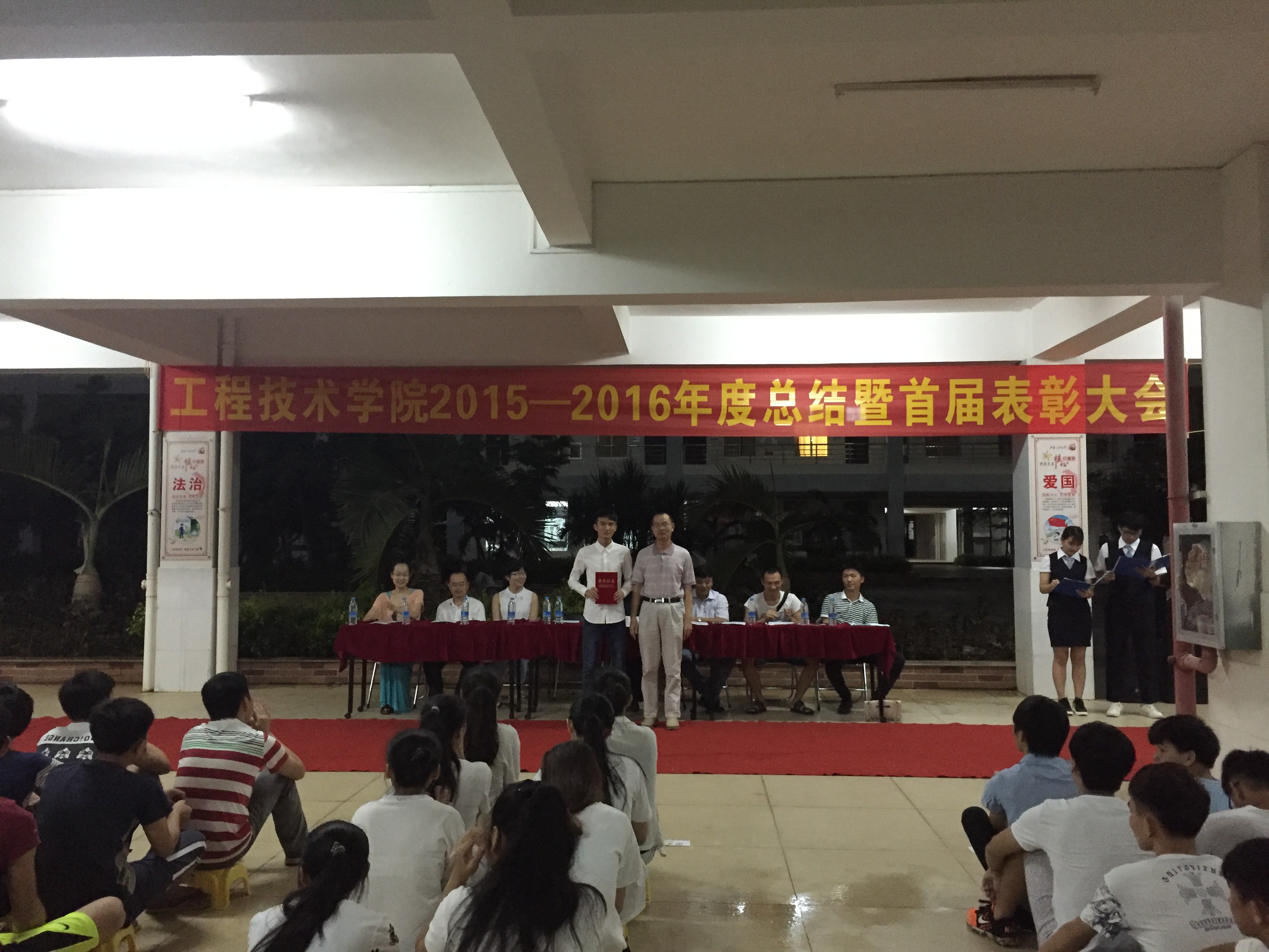 大会首先介绍了2015-2016年度所做的活动及获得的荣誉,然后由王忠副经理至大会开幕词王忠副经理已故事为题材让工程的学子们明白学习专业知识只有专注才能学好,把每一个简单的事情做好你就是一个不平凡的人。接着对2015-2016年度优秀个人和班级进行颁奖表彰,本次共设14个奖项,共计66人受到表彰。
