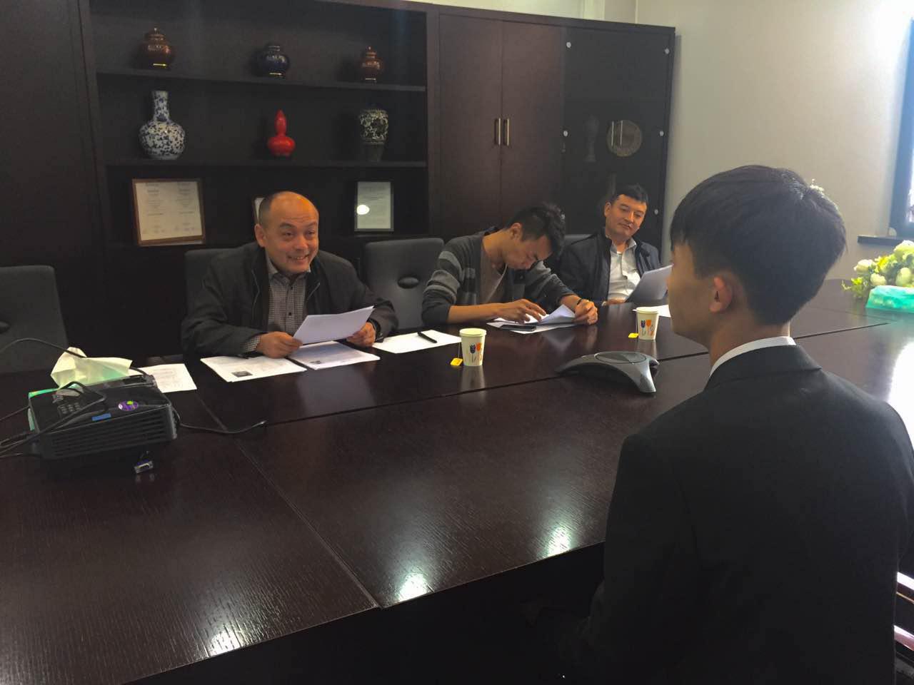 保时捷JRM车队负责人与公司通过最终轮面试学生黎传杨、指导老师陈明合影