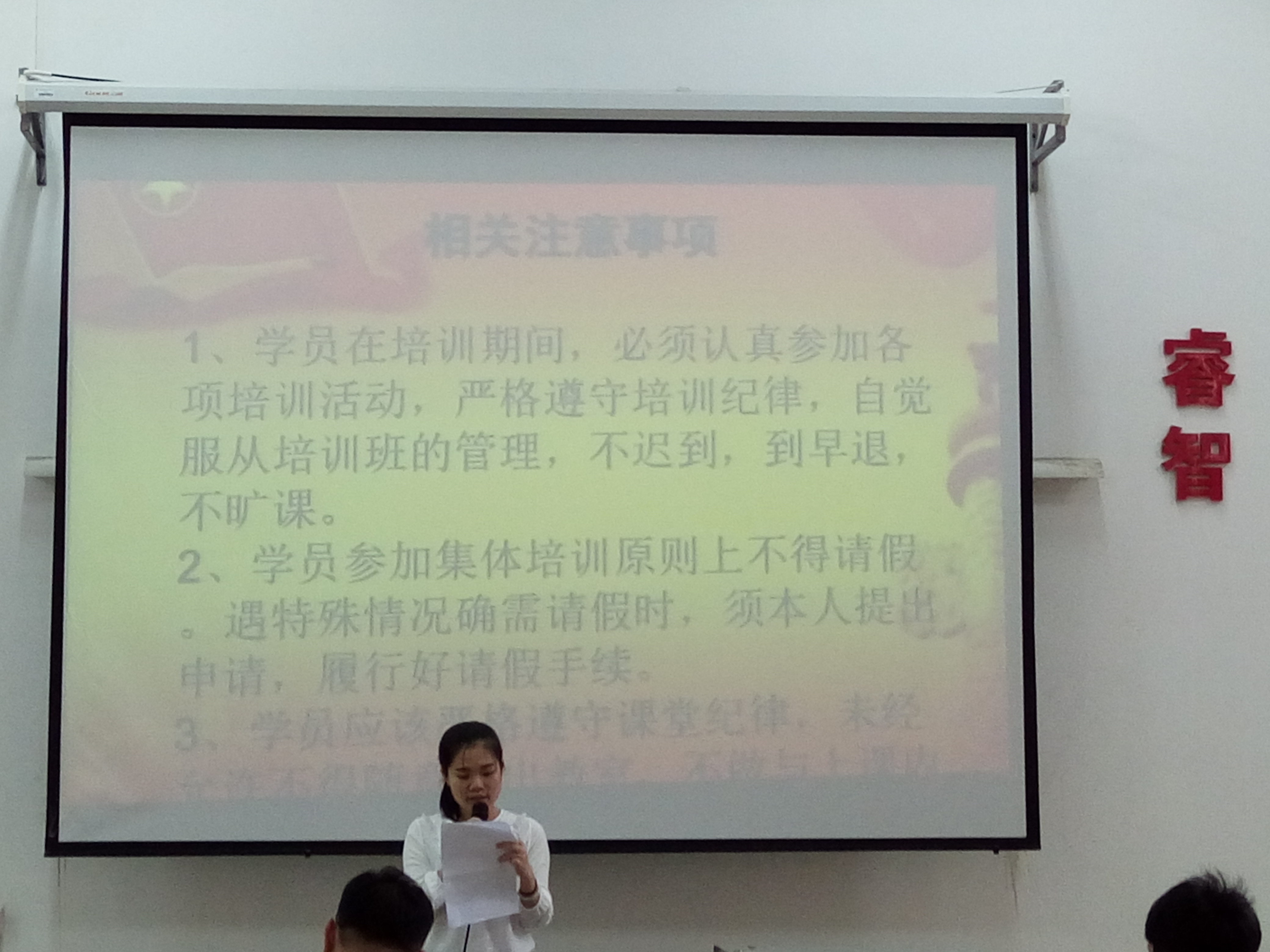 4月19日讯(WilliamHill中文官方网站 李京京报道)为了进一步提升公司员工党员队伍的党性修养,加强对入党积极分子的教育培训工作,4月19日下午3:00在二栋教学楼2526多媒体教室进行了WilliamHill中文官方网站第一期党课培训的开班典礼。参加开班仪式的领导老师分别是党总支书记陈继敏老师、辅导员肖洁老师、辅导员刘芳老师,以及员工团总支副书记朱振通和本期参加党课培训的60名入党积极分子。本次开班仪式由WilliamHill中文官方网站员工党员黄丹主持。
