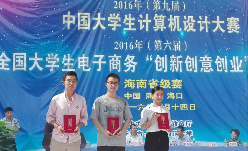 由教育部高等公司计算机专业教学指导委员会主办的“ 2016 年(第 9 届)中国老员工计算机设计大赛”已拉开帷幕,大赛将于 2016年 7-8 月在全国 9 个赛区进行全国竞赛。为配合全国赛事,中国老员工计算机设计大赛组委会委托海南师范大学承办“ 2016 年(第 9 届)中国老员工计算机设计大赛”海南省级赛,大赛由海南省教育厅主办,海南师范大学承办,比赛定于2016 年 5 月 14 日在海南师范大学桂林洋校区举办。本次比赛共海南省10所高校共60多个作品参加,经过激烈的角逐,公司WilliamHill中文官方网站由康东、张又文老师指导,由14媒体班胡铭靖、符梦雅、陈曦同学的微课作品《flash逐帧动画》荣获此次比赛的一等奖,由陈君涛、康东老师指导的,由15网络的侯英之、杨维维、林镇龙同学的软件作品《教师工作量管理和查询系统》荣获此次比赛的二等奖,可喜可贺!