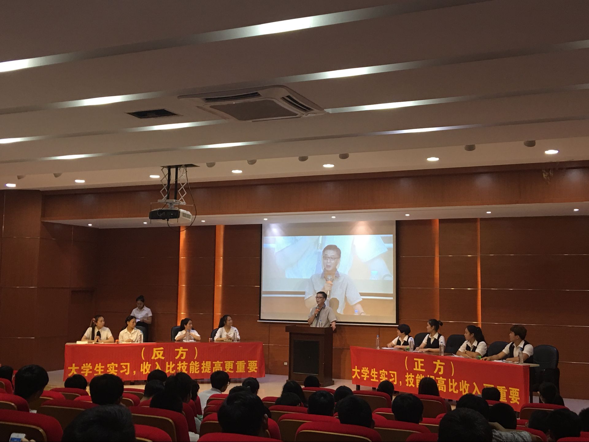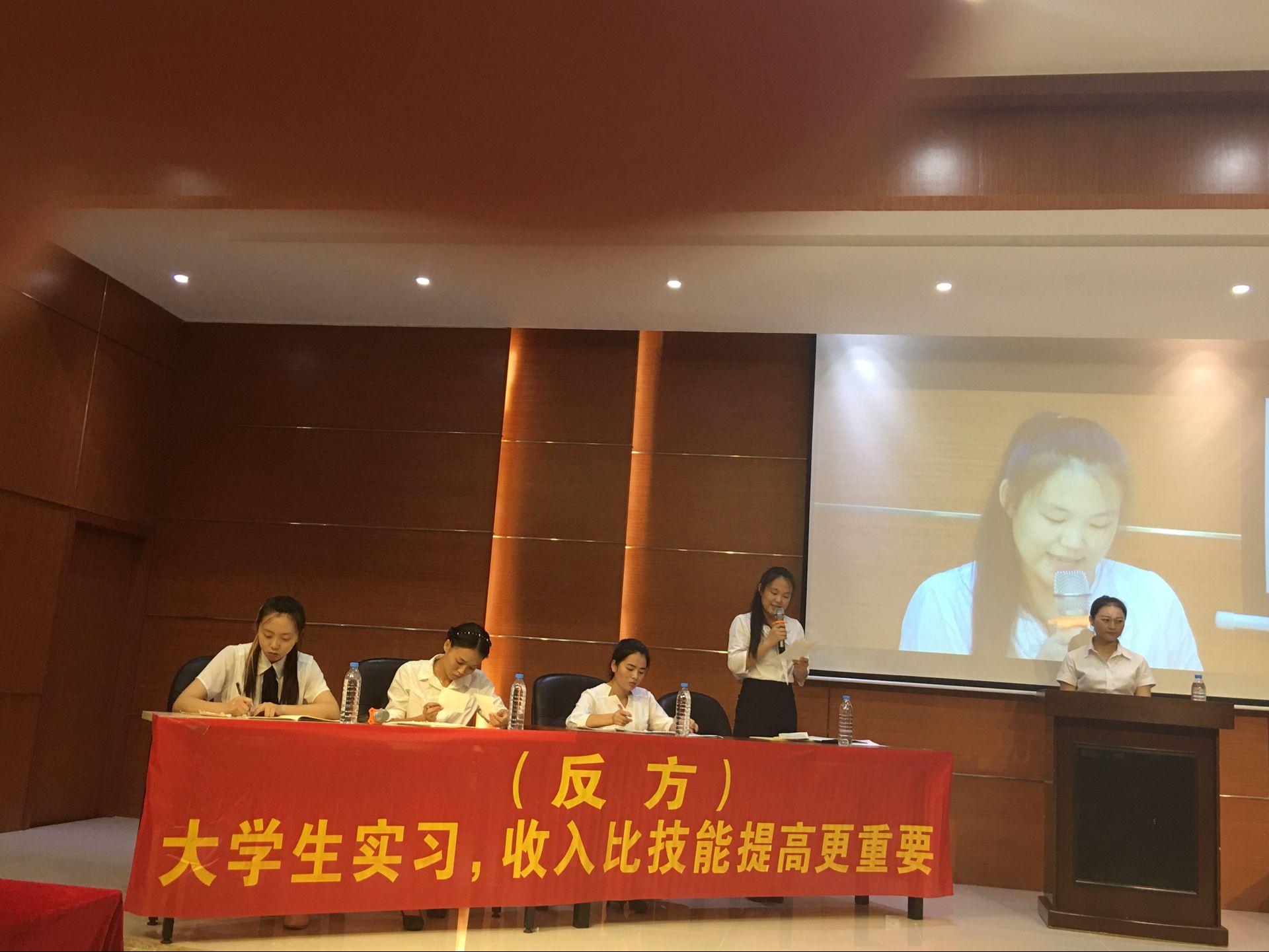 5月17日讯(WilliamHill中文官方网站 岳将红报道) 为了丰富同学们的课余生活,提升文学修养,调动同学们的积极性,5月16日晚公司于学术交流中心举行了第九届经贸老员工辩论赛预赛。其中预赛参赛的公司一共有六个,两两一组分正反方比赛,比赛共三场。第三场比赛中,WilliamHill中文官方网站作为正方迎战反方国际教育公司代表队。本场比赛的辩题为,老员工实习技能提高与收入哪个更重要。