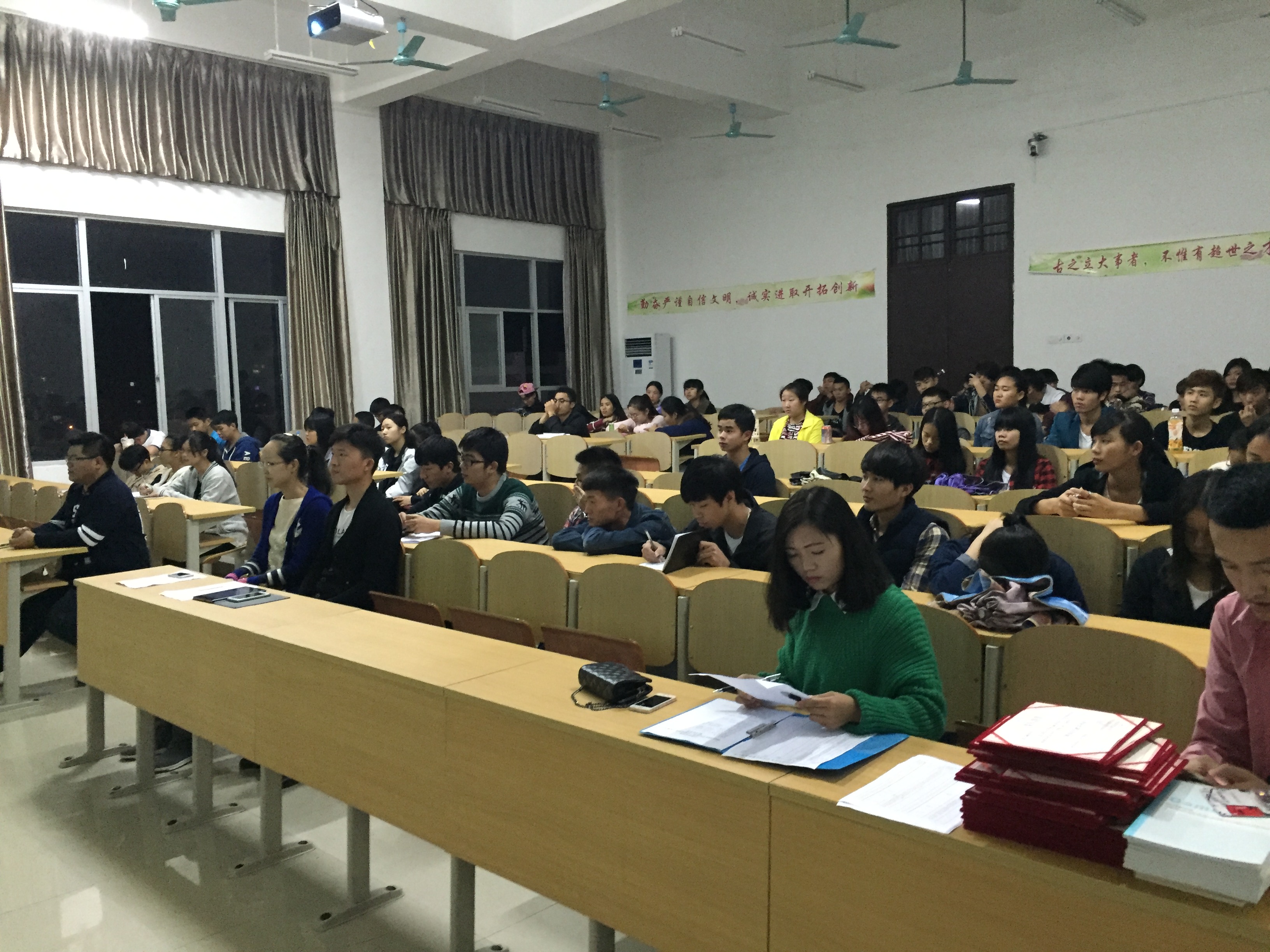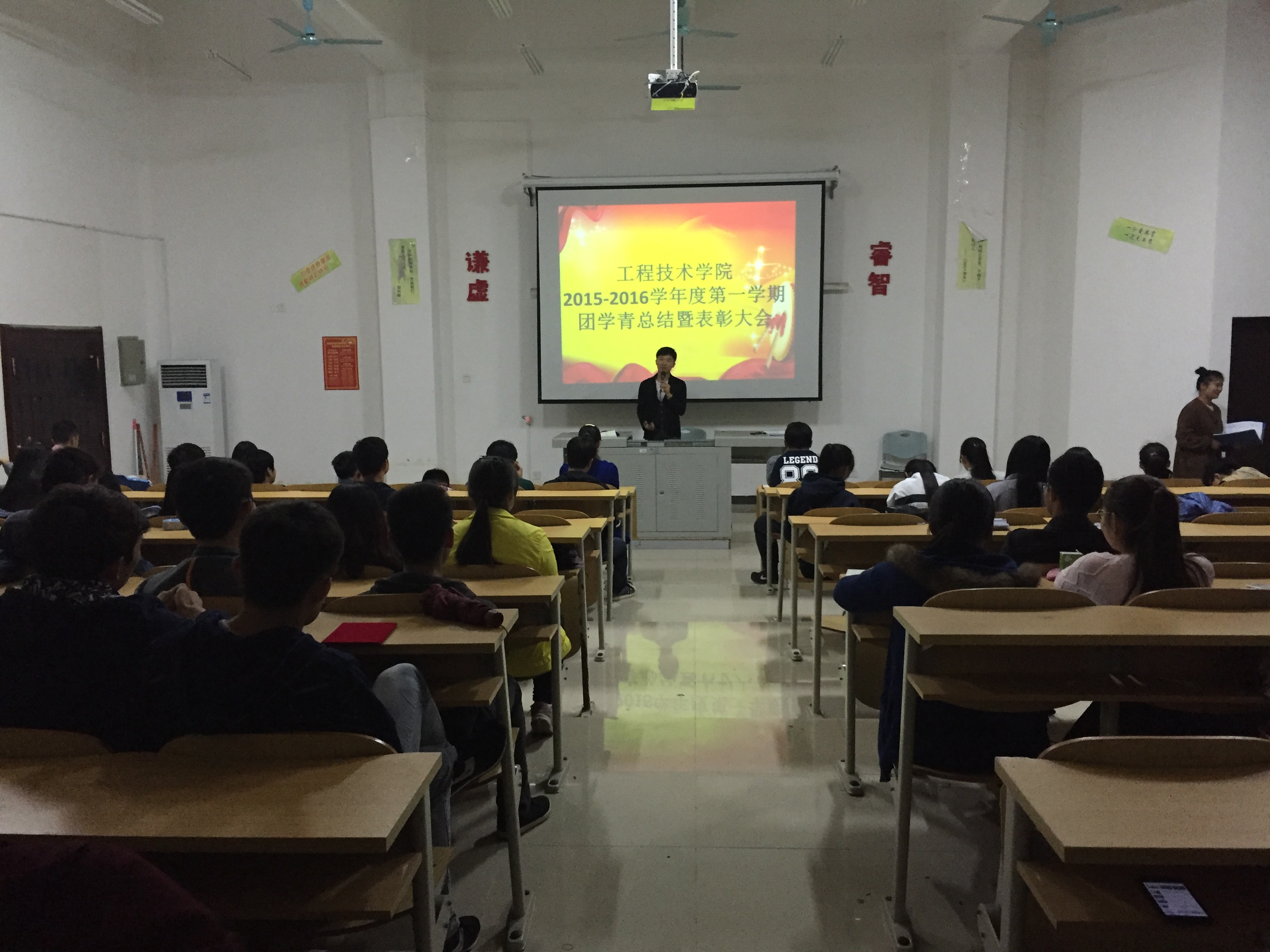 然后由代晓明老师作大会讲话。讲述了综合测评分的规则,并要求大家要严律守纪、团结一心,团学青组织分工不分家,大家是一个主体,任何工作都应该齐心协力,力求行成合力,才能达到最佳效果。最后希望大家能拎紧一股绳,把我们的组织建设成一个有组织有纪律集体。