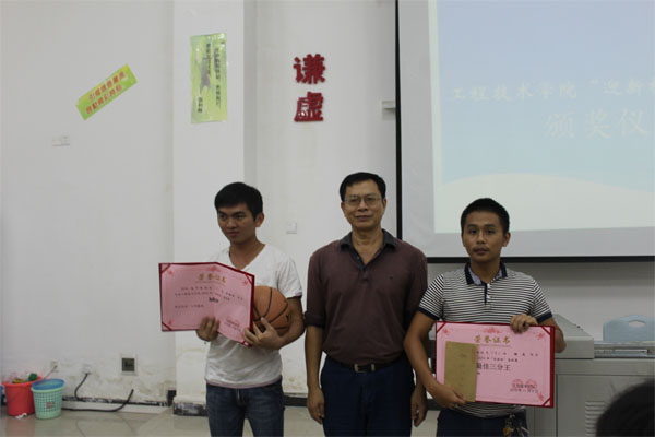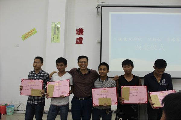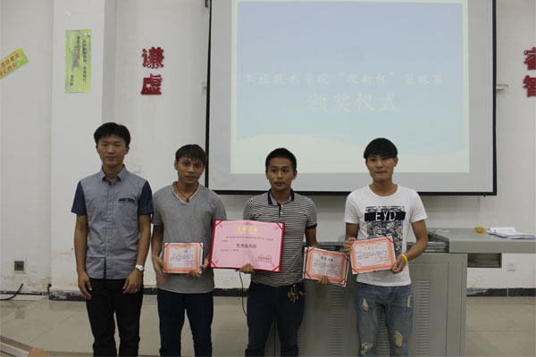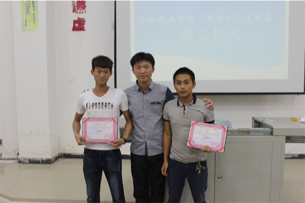 会议首先由梁老师做开场讲话。接着进行颁奖,第一轮由梁其钰老师给优秀裁判组颁奖,分别是(组长谢龙)成员(谢龙,陈鑫,唐鹏,张金平,符成良,田斌)。第二轮由陈继敏书记为获得本次篮球赛名次的班级颁奖,分别是第一名14中德2班(队长罗明吉)第二名14网络2班(队长谢龙)第三名15汽修2班(队长王杰)优秀奖14网络1班(队长张水胜)体育道德风尚奖15网络1班(队长黄仕鸿)。第三轮由梁老师为东西部冠军颁奖,分别是东部冠军14网络2班(队长谢龙),西部冠军14中德2班(队长罗明吉)。第四轮由陈继敏书记为优秀球员颁奖,分别是最佳三分王(谢龙),MVP(罗明吉)。老师们与这些获奖人员相继留影纪念。至此,公司“迎新杯”篮球赛颁奖典礼圆满结束。